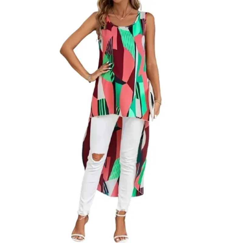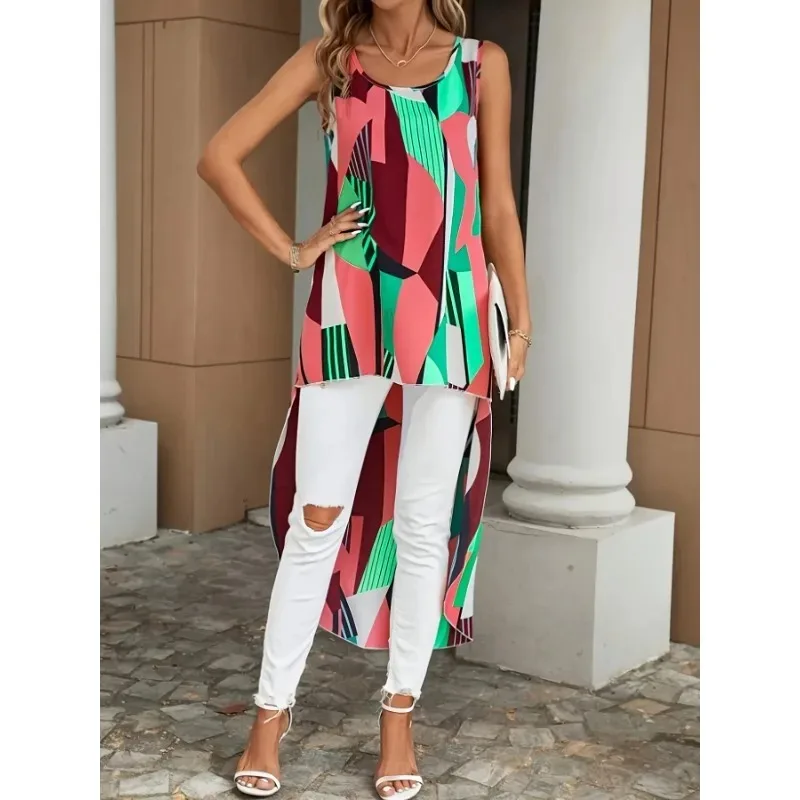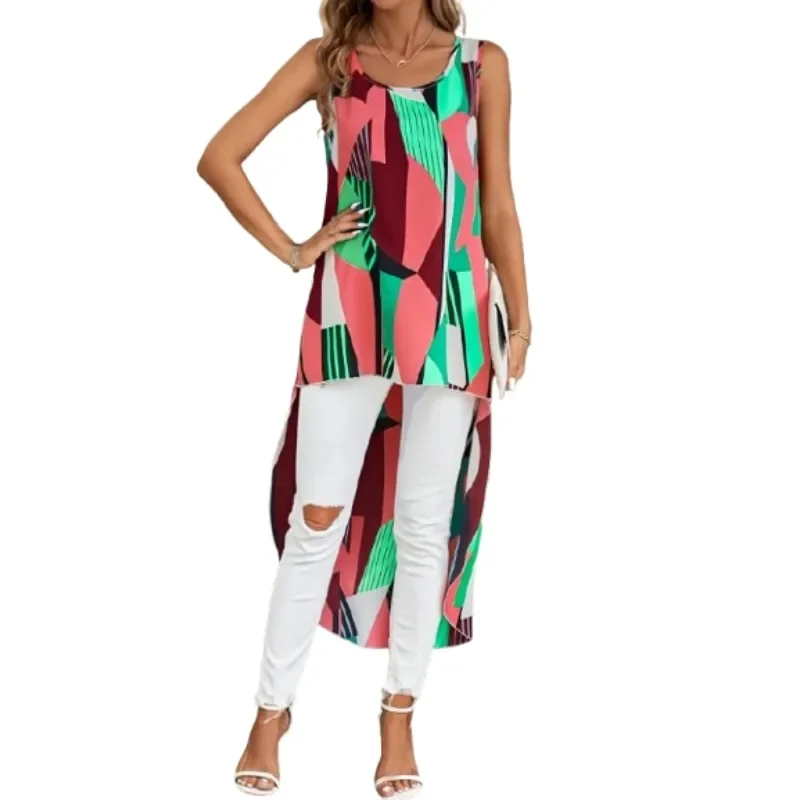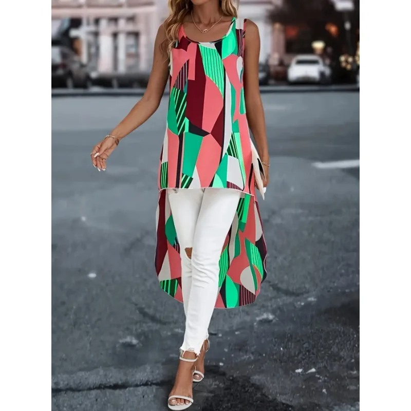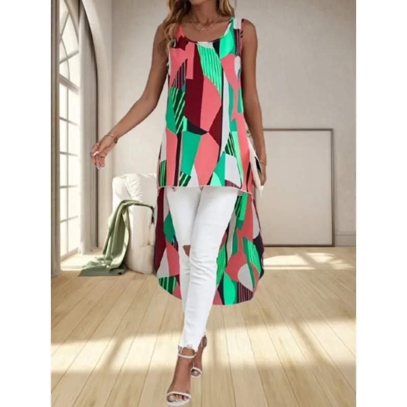 Plus Size Women’s New Fashionable Front Short Back Long Casual Sleeveless Commute Shirt