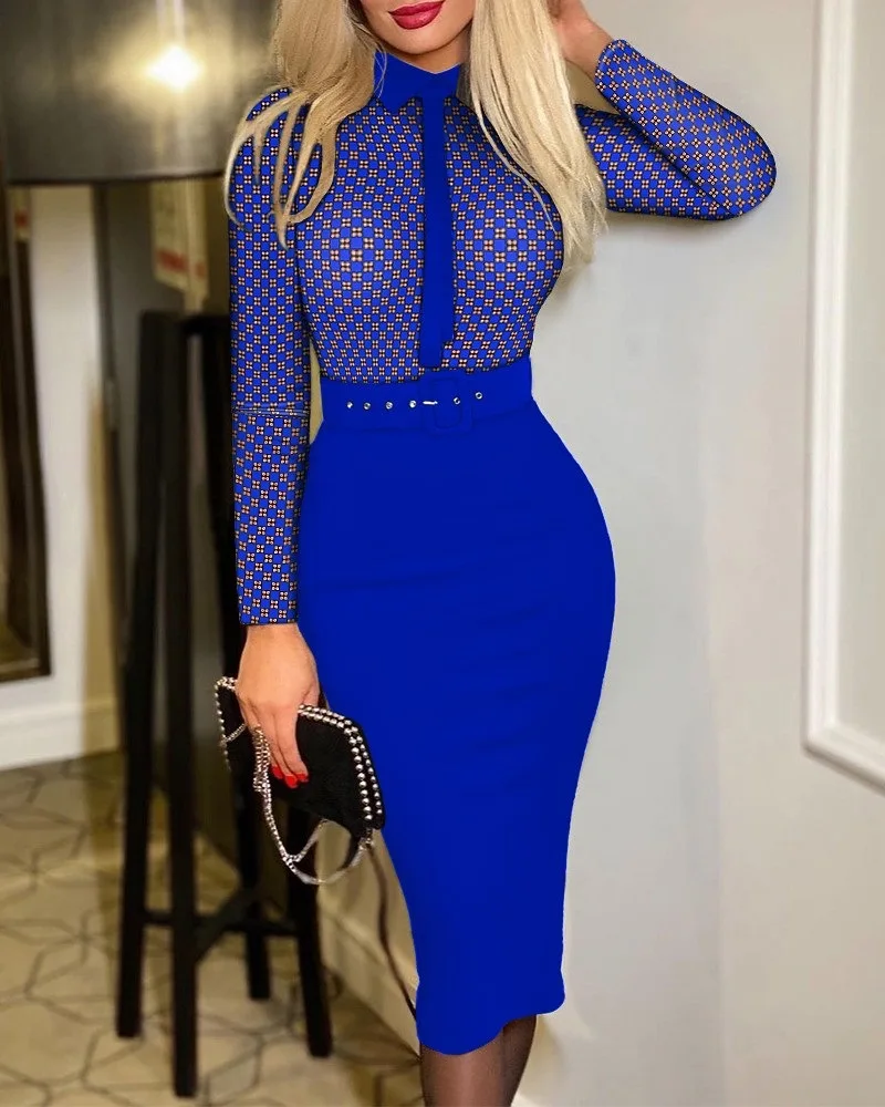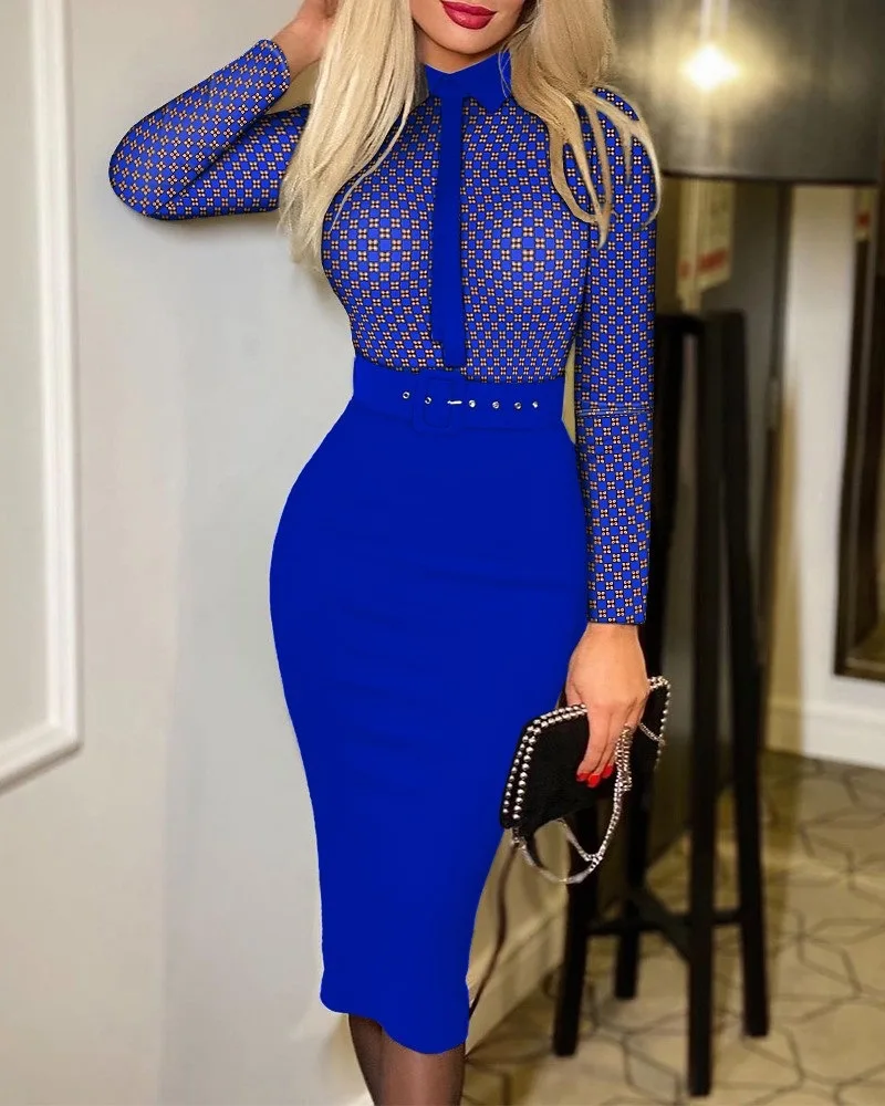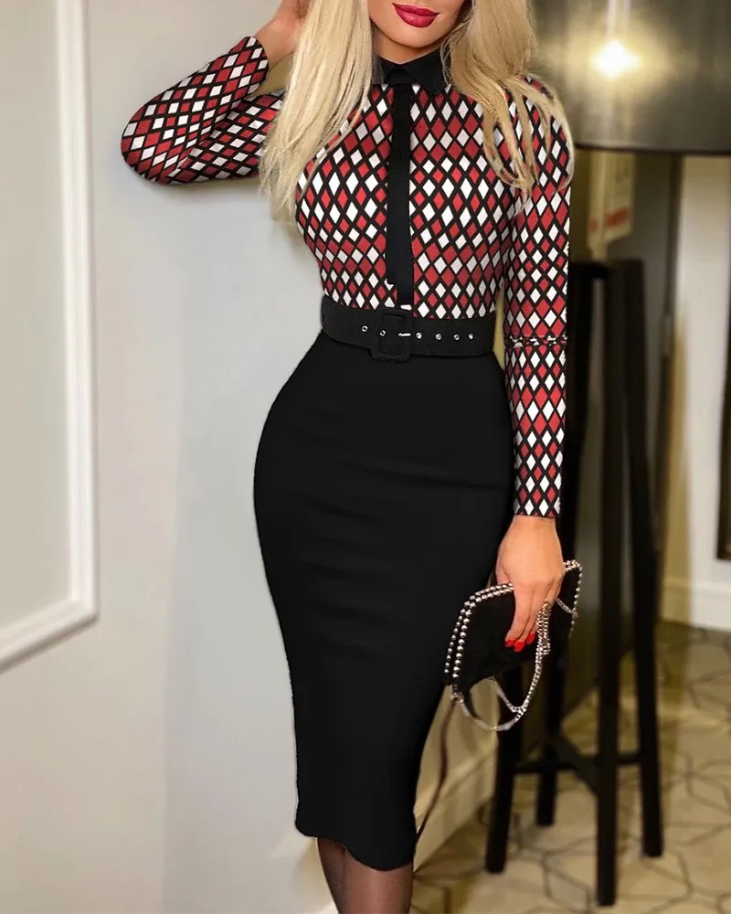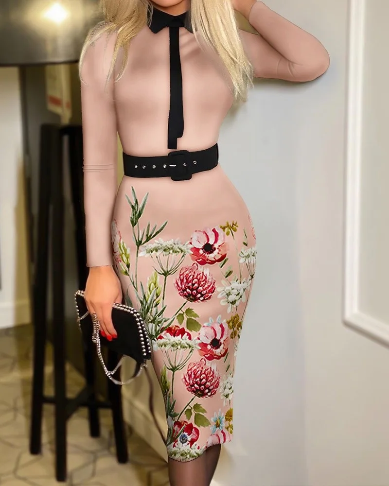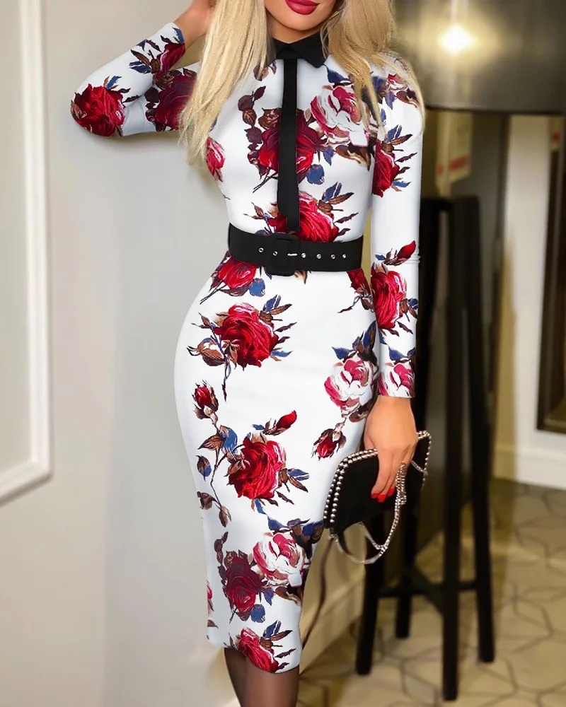 Popular Fashion Women’s Print Dress Women With Belt
