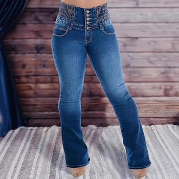 2024 European and American new high waisted slim fit elastic button lined women’s slightly flared denim pants