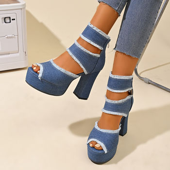 Summer Women Sandals New Platform Blue Denim Ankle Strap High Heels Shoes for Women Fashion Outdoor Sexy Peep Toe Sandals Women