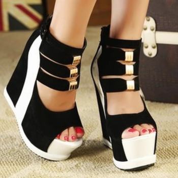 Summer fish mouth suede mesh waterproof platform sexy sandals slope heel ultra-high-heeled banquet dress small size women’s shoe