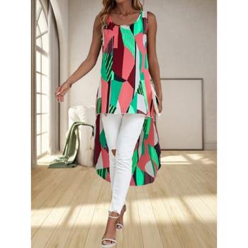 Plus Size Women’s New Fashionable Front Short Back Long Casual Sleeveless Commute Shirt