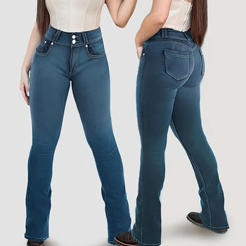 Women’s High Waisted Stretchy Bootcut Jeans Casual Double Button Washed Straight Leg Denim Pants