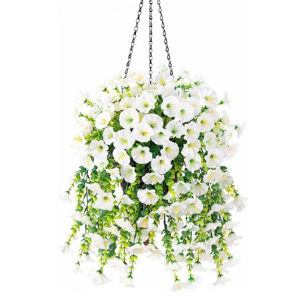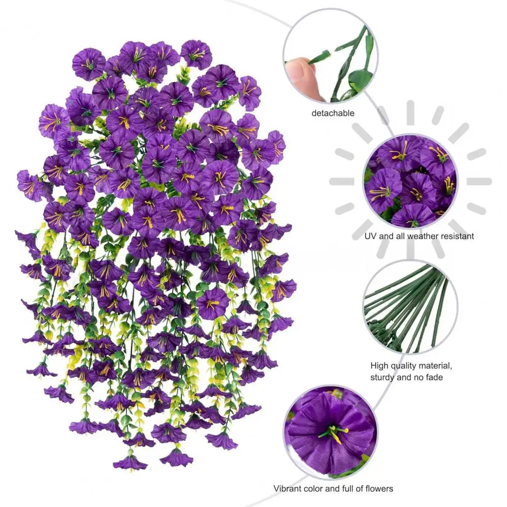 Realistic Hanging Plant Decor Uv Resistant Artificial Hanging Petunia Flowers for Outdoor Home Decor Faux for Patio for Outdoors
