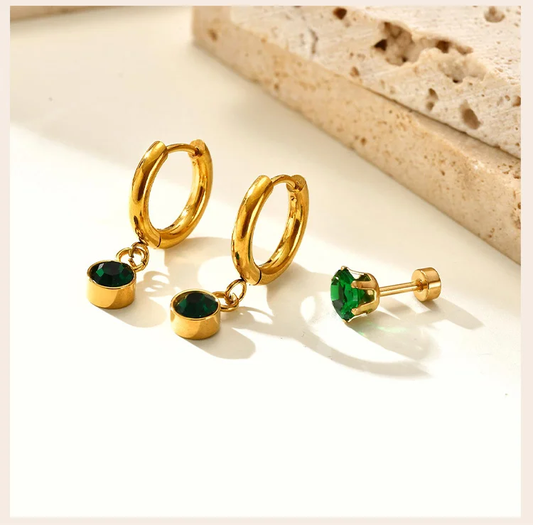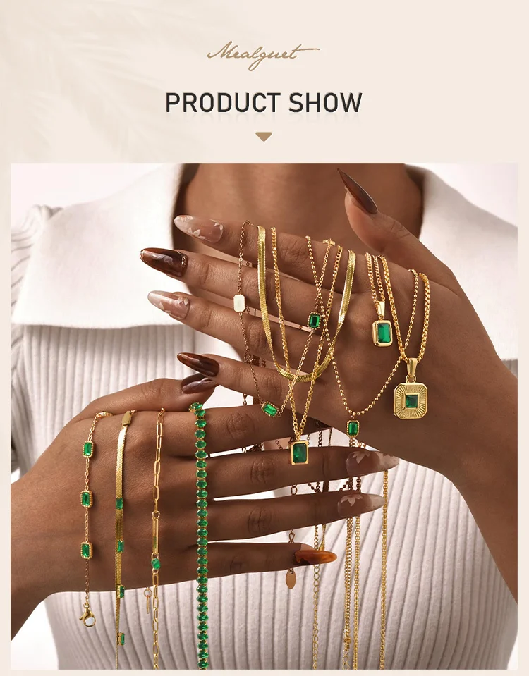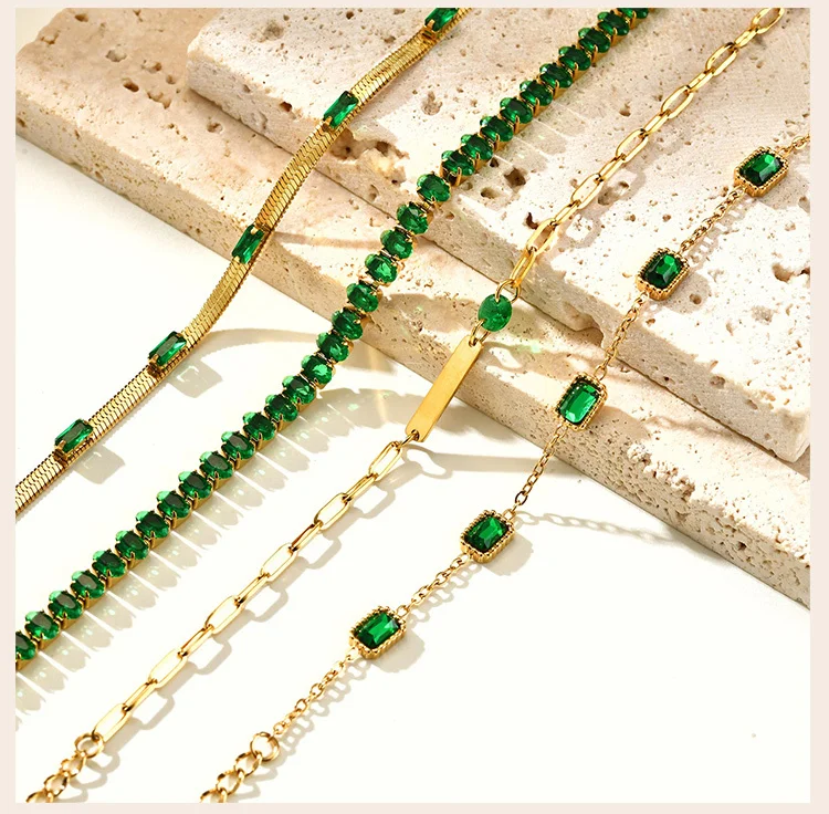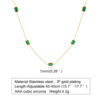 Retro Green Zircon Pendant Necklace For Women, Crystal Stone Chain Stainless Steel Gold Plated Luxury Birthday Gifts