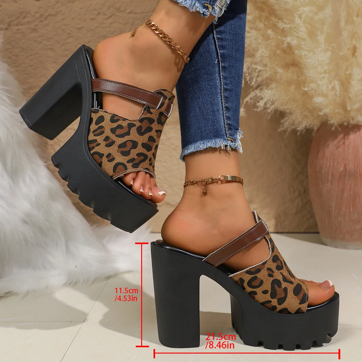 Round Toe Open Toe Slippers Sandals Platform Anti-Slip Wear-Resistant High Heels Women’s Summer New Outside Chunky Heel Shoes