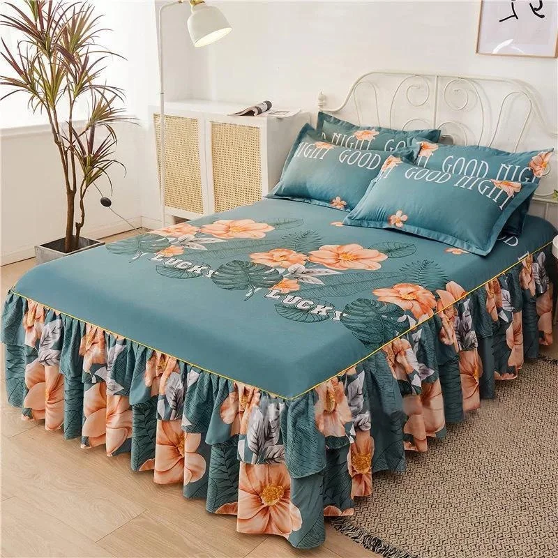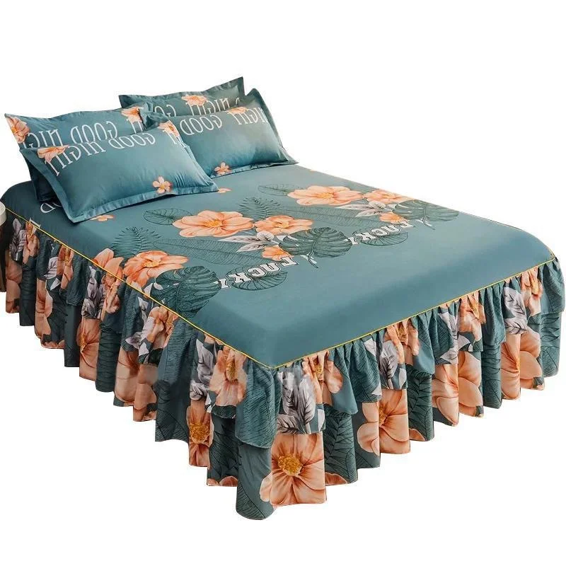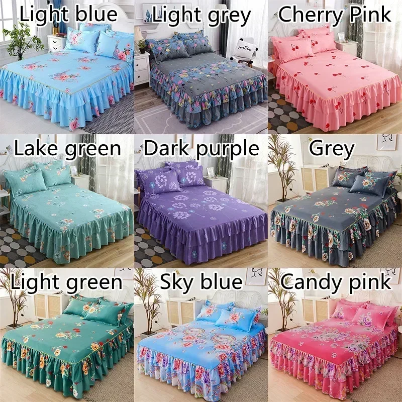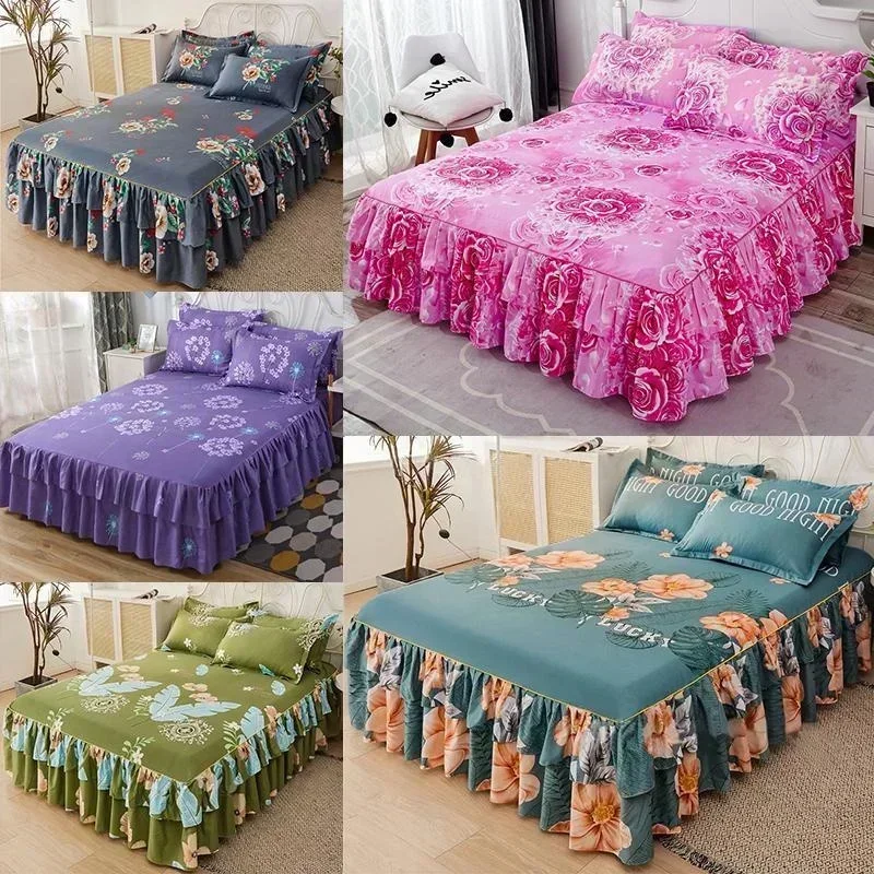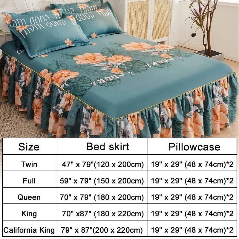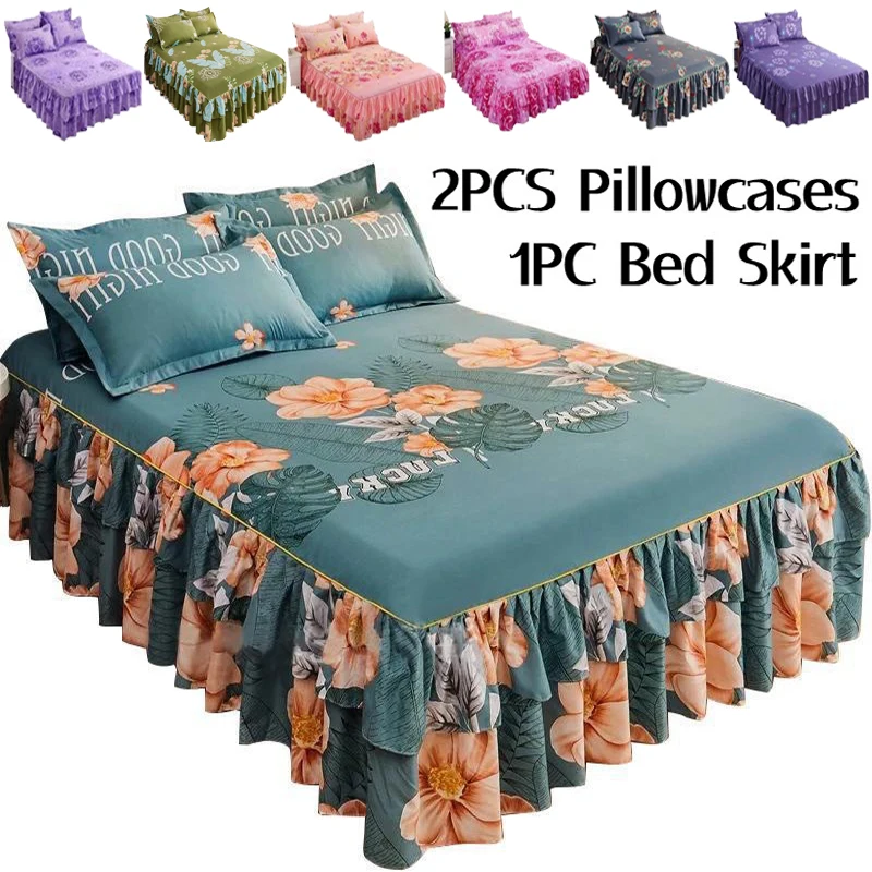 Ruffle Skirt Bedspread Home Textile Printed Bed Skirt Bedroom Coverlets Bedspreads Sheets Dust Cover Bedding 3PCS/Set