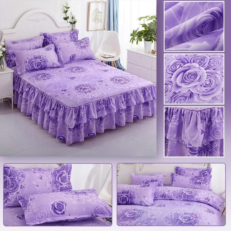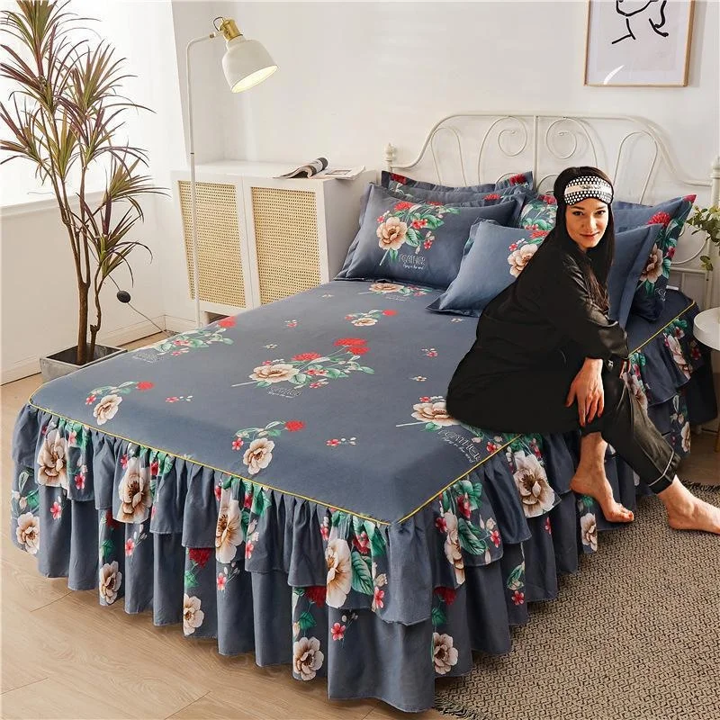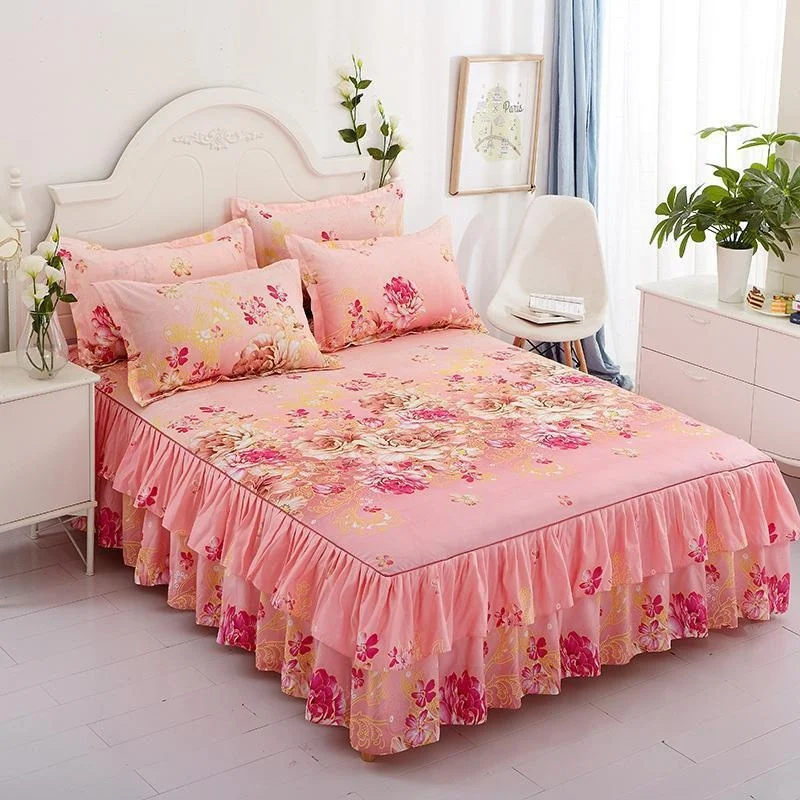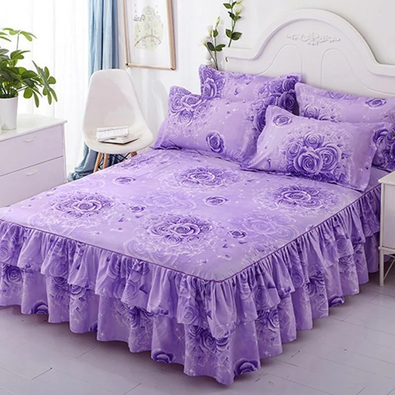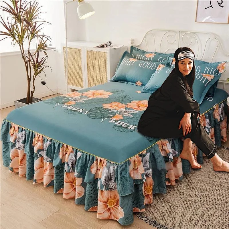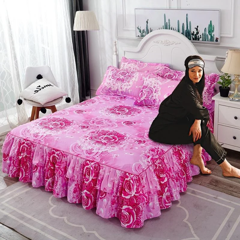 Ruffle Skirt Bedspread Home Textile Printed Bed Skirt Bedroom Coverlets Bedspreads Sheets Dust Cover Bedding 3PCS/Set