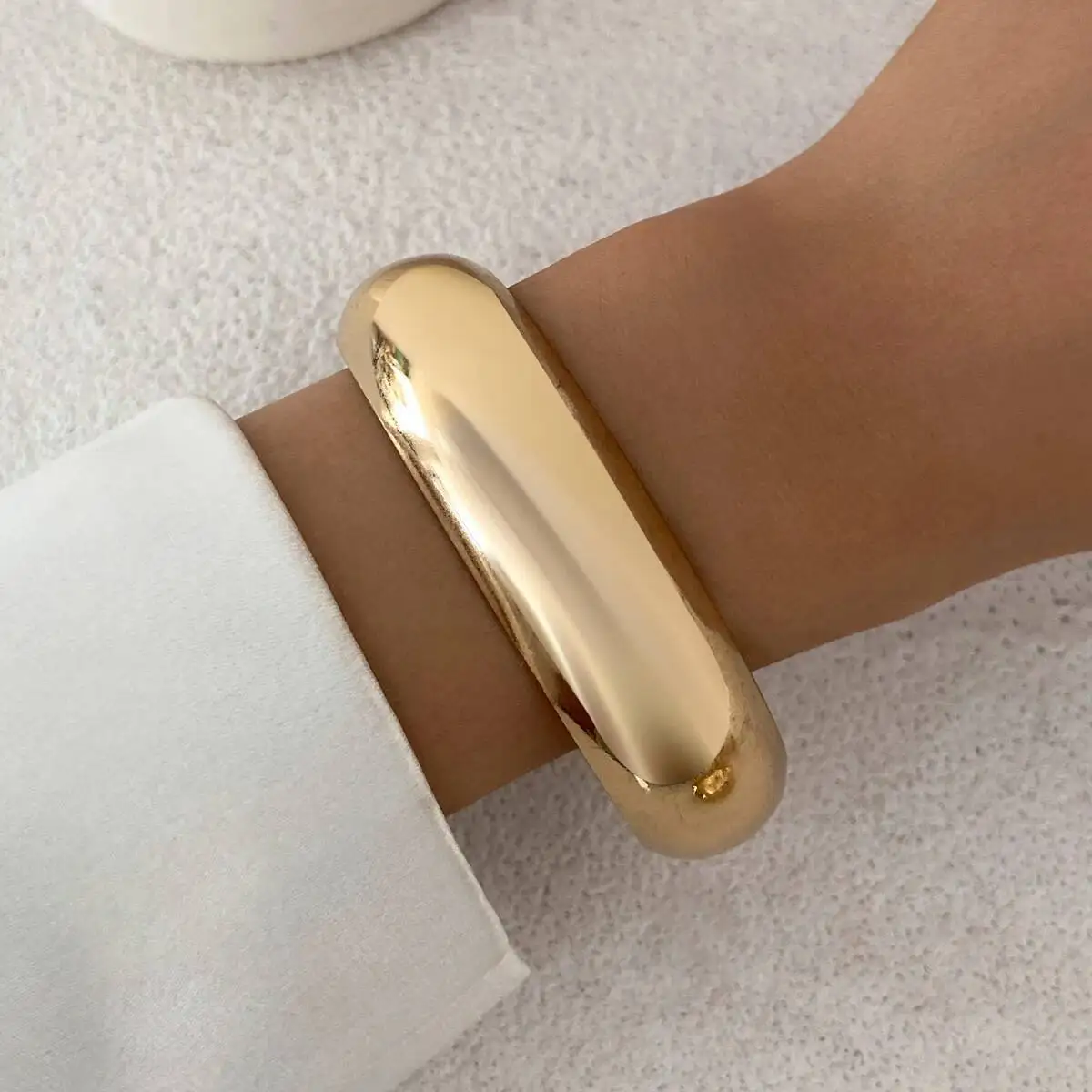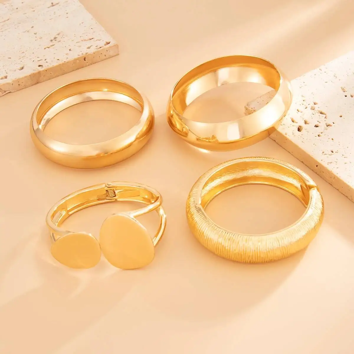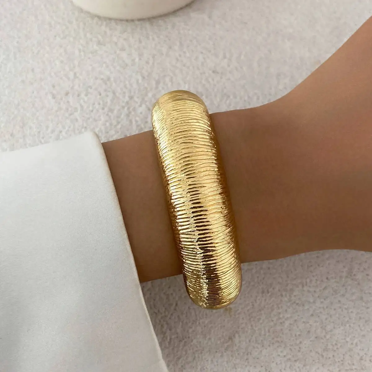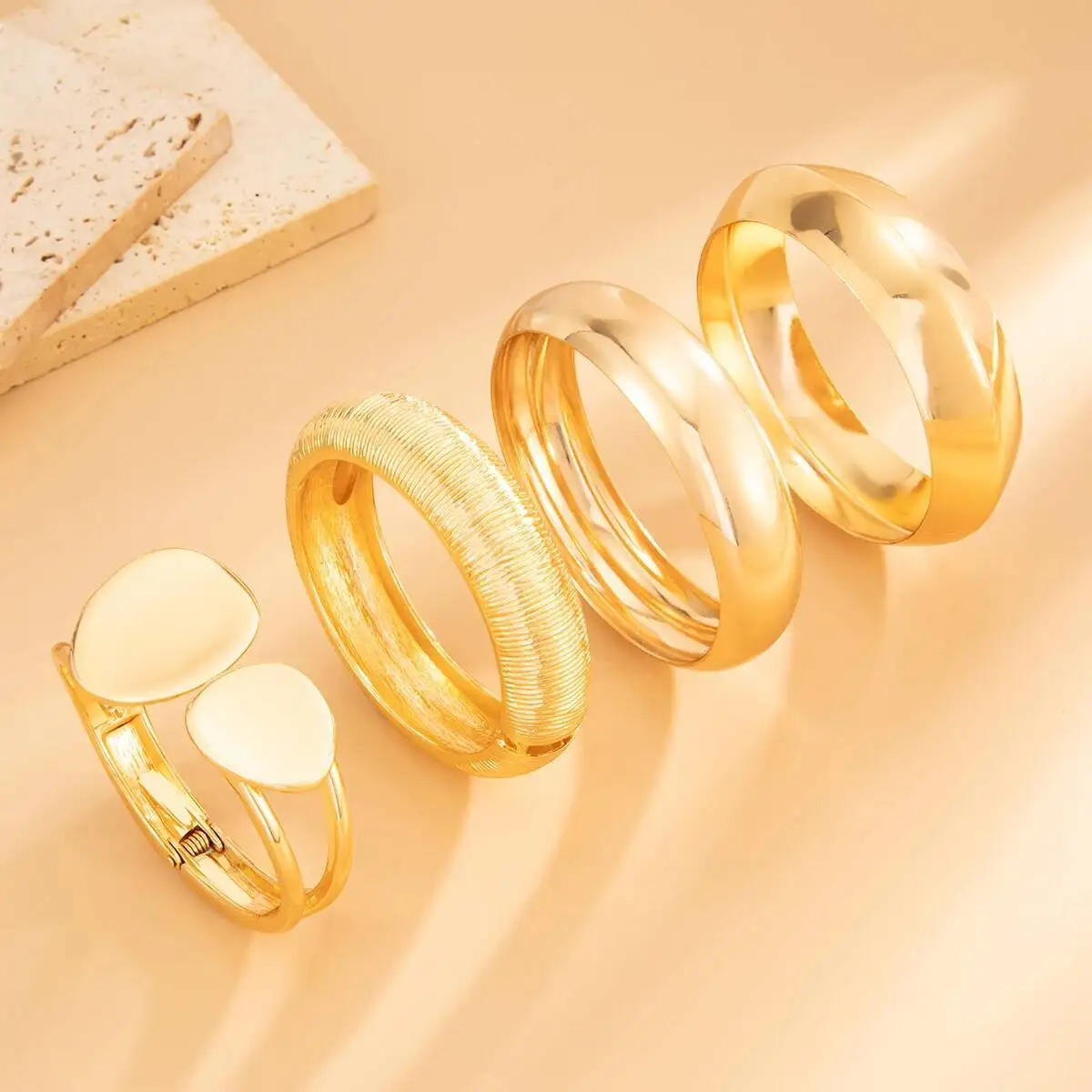 Salircon 4 Style Punk Exaggerated Wide Cuff Bangles Women Vintage Irregular Geometric Glossy Gold Color Spring Bracelets Jewelry