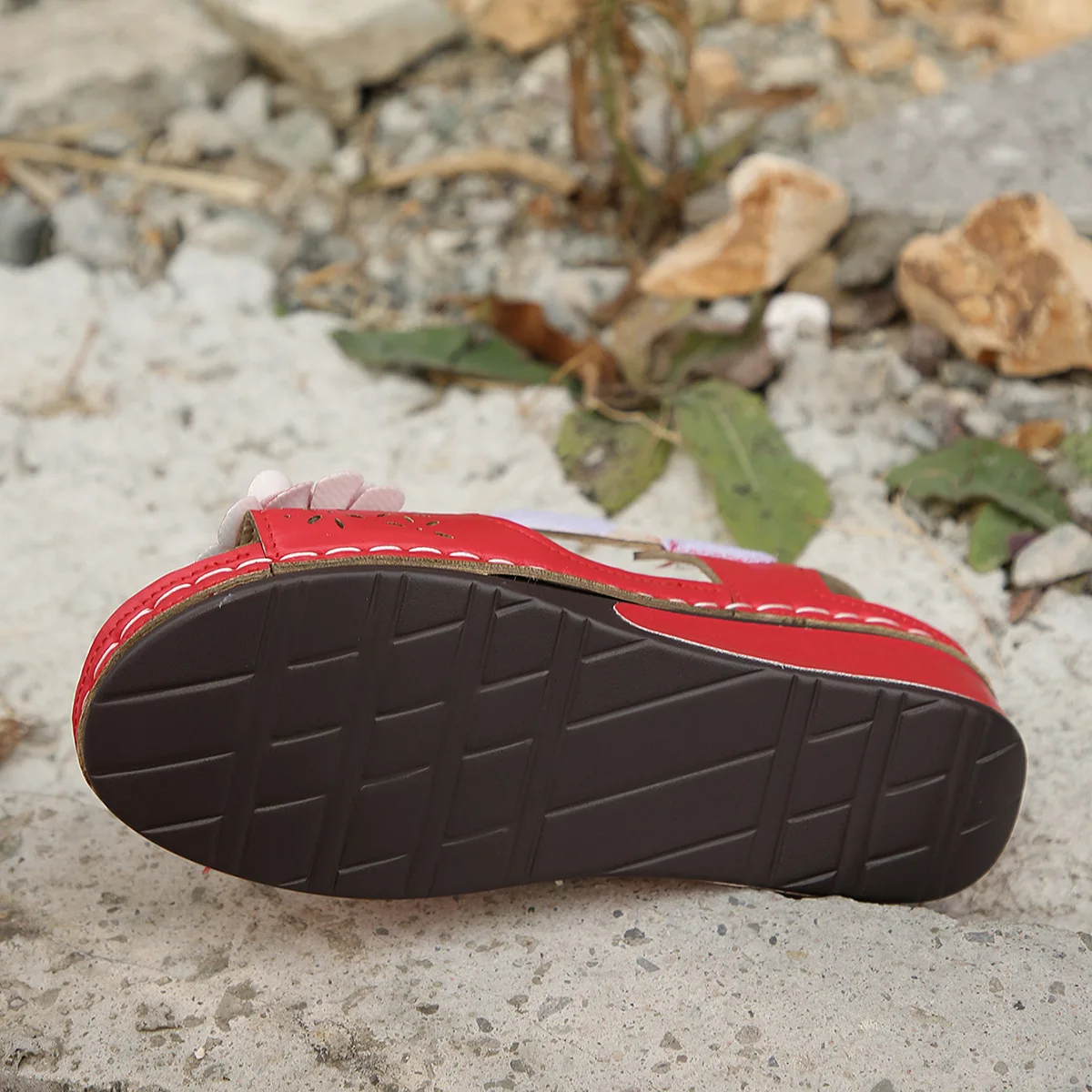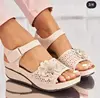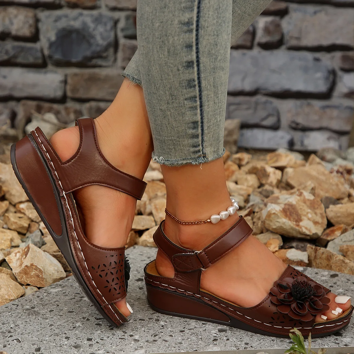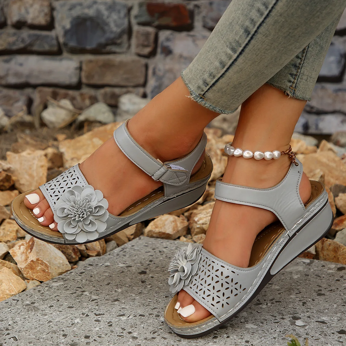 Sandals Women Hollow Out Floral Pattern Ankle Strap Wedge Thick Sole Floral Sandals Non Slip Lightweight Shoes Footwear