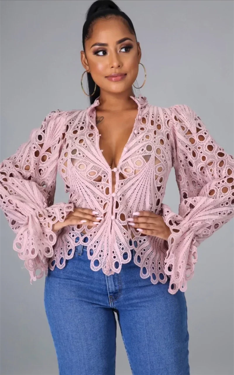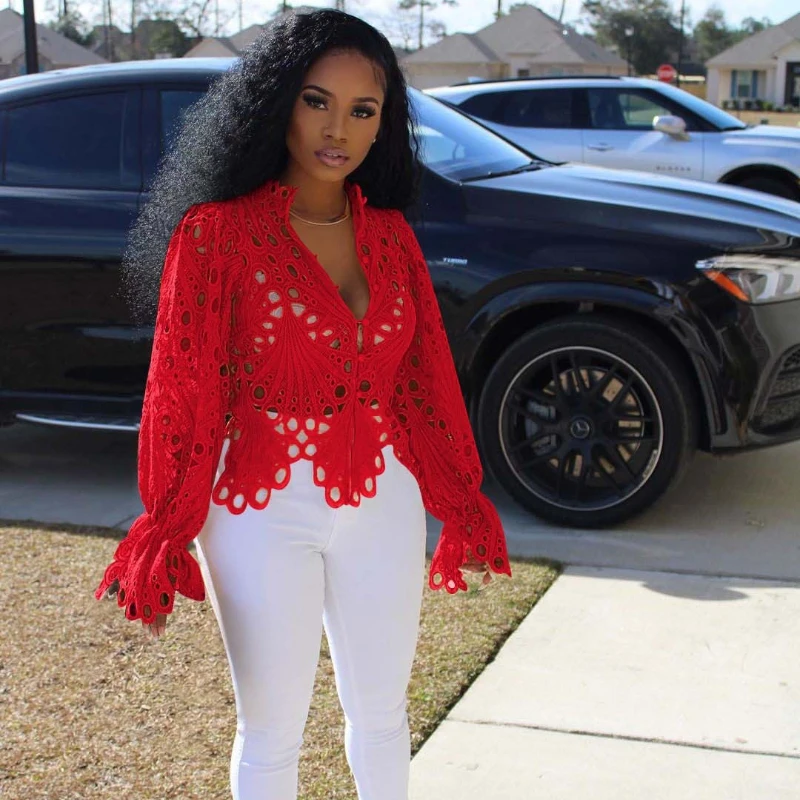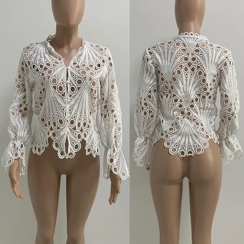 Sexy Hollow Out Floral White Blouses Tops for Woman 2025 Birthday Flare Sleeve Stylish Y2K Club Wear Shirts Blusas Para Mujer