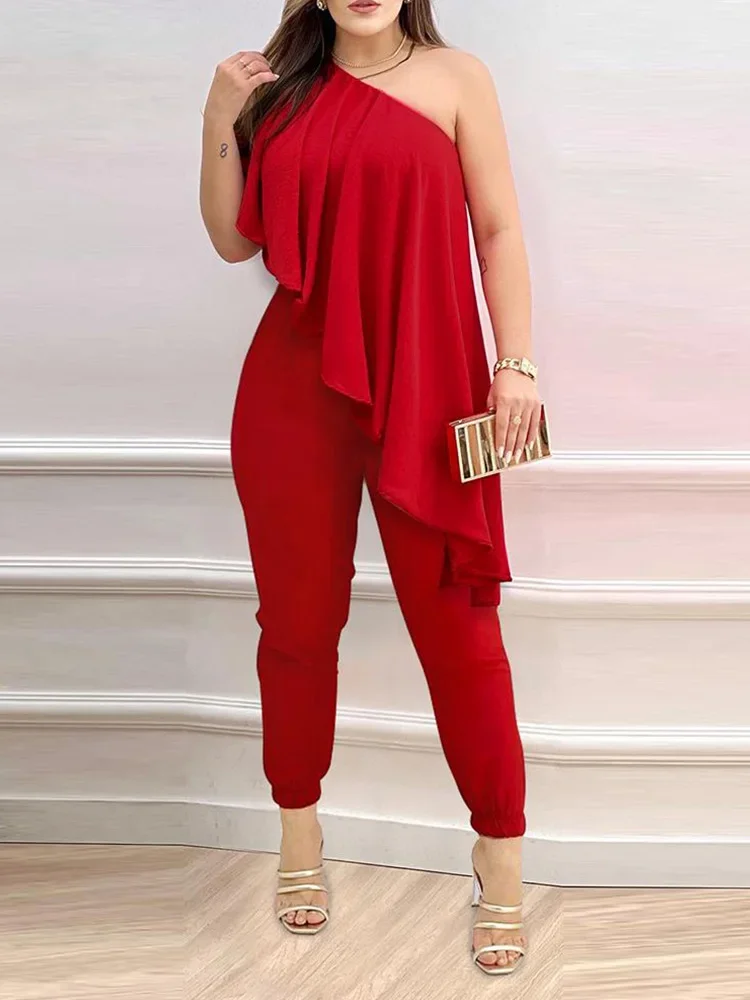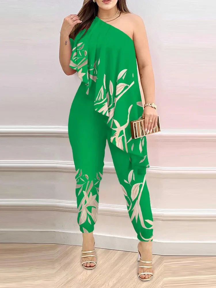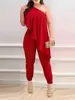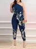 Sexy One Shoulder Jumpsuits Woman 2023 Summer New Fashion Asymmetrical Ruffles Plain Sleeveless Print Long Jumpsuit Clothing