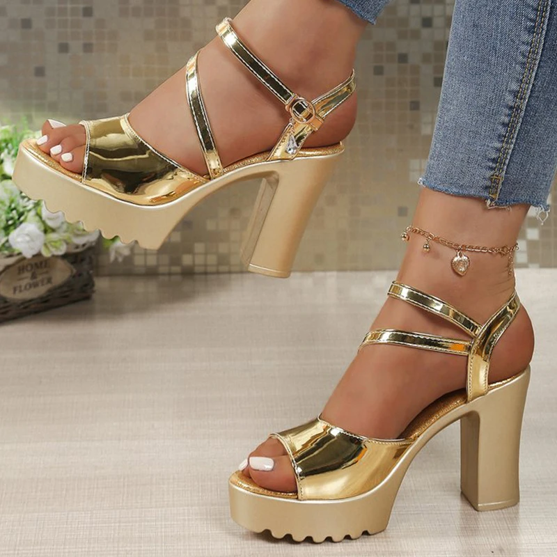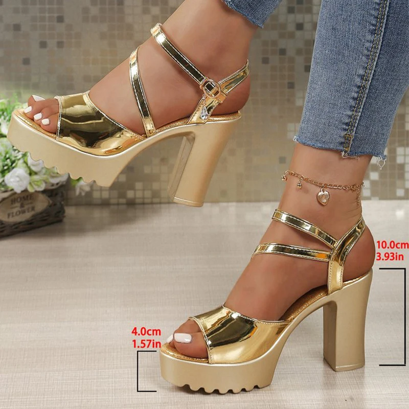 Sexy Solid Open Toe Pumps Heels Women Summer Fashion Buckle Strap Women’s Pumps Shoes Pu Platform Extreme High Heels Ladies