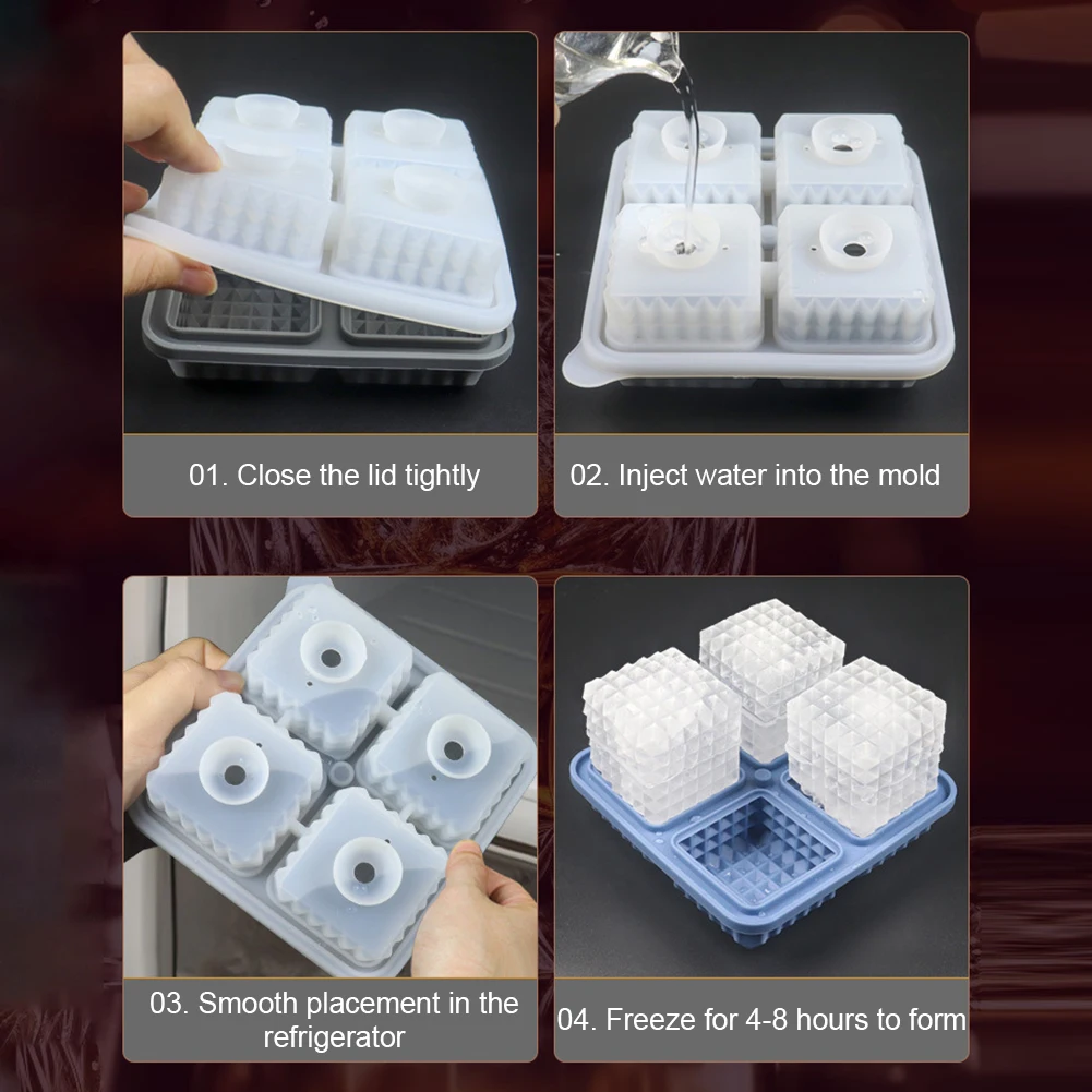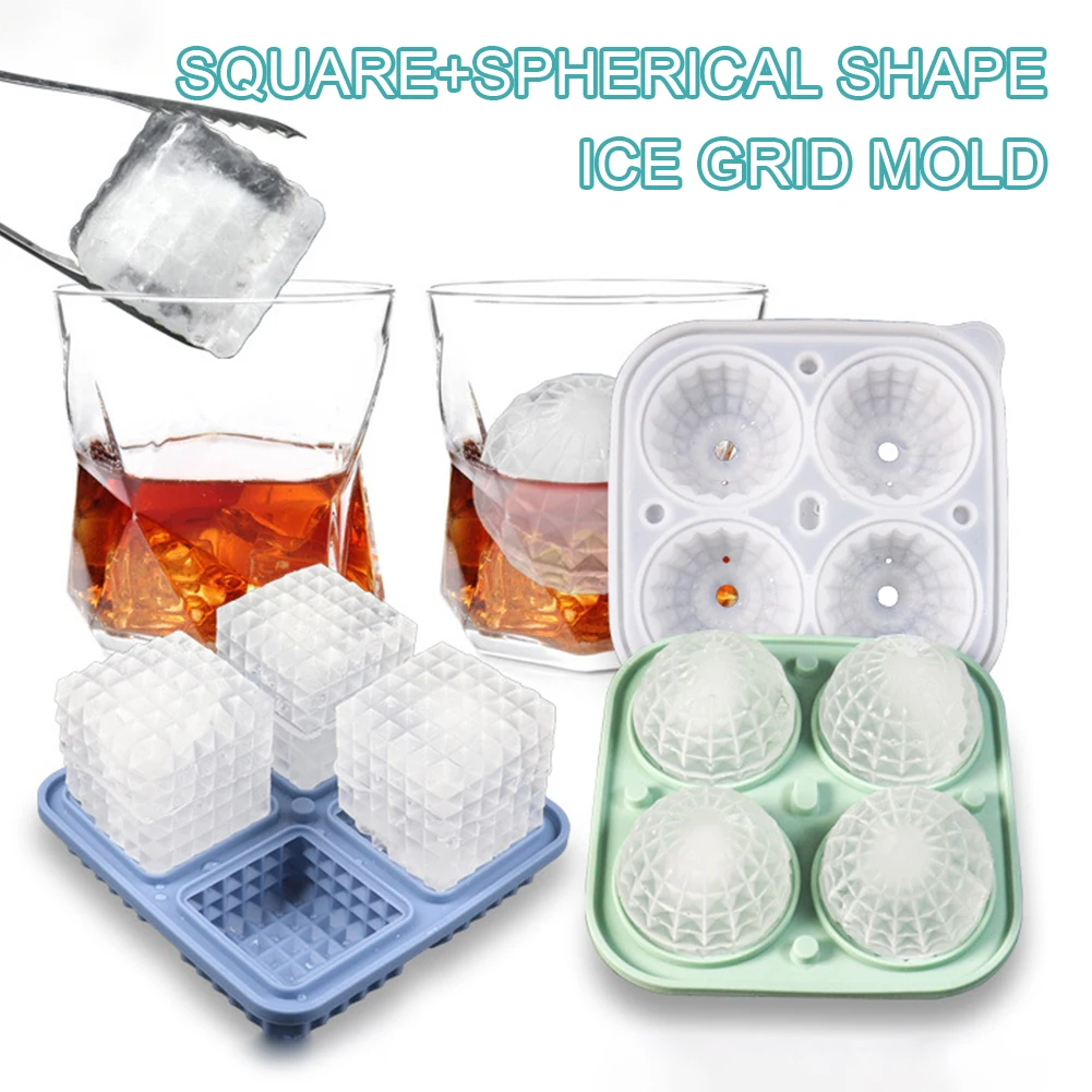 Silicone Whiskey Ice Cube Maker Tray with Lid Household DIY Ice Mold Kitchen Bar Accessories for Cooling Drinking