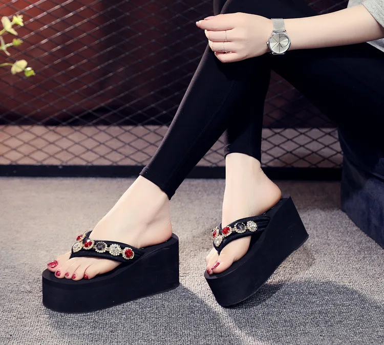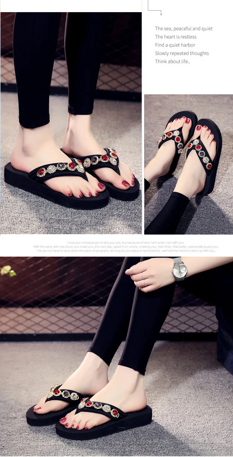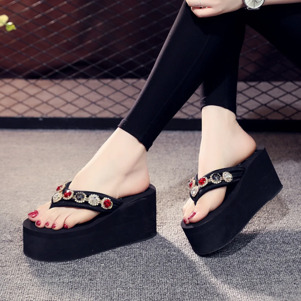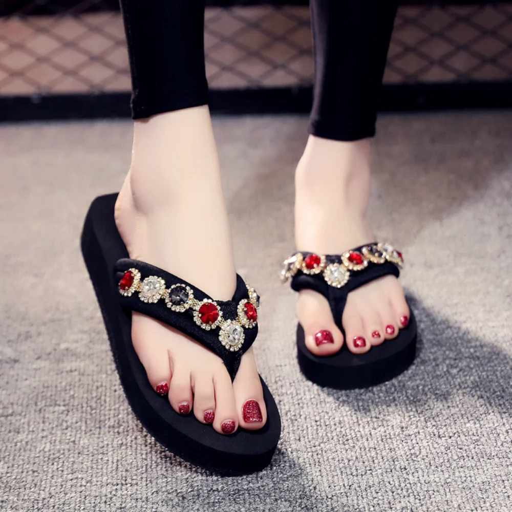 Slippers Women’s Summer Outside 2026 Fashion Rhinestone Flip Flops Flat Bottom Wear Non Slip Beach Shoes Women Sandals Trend