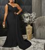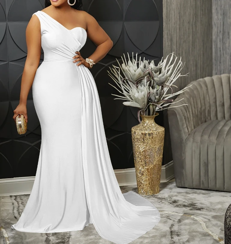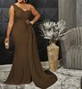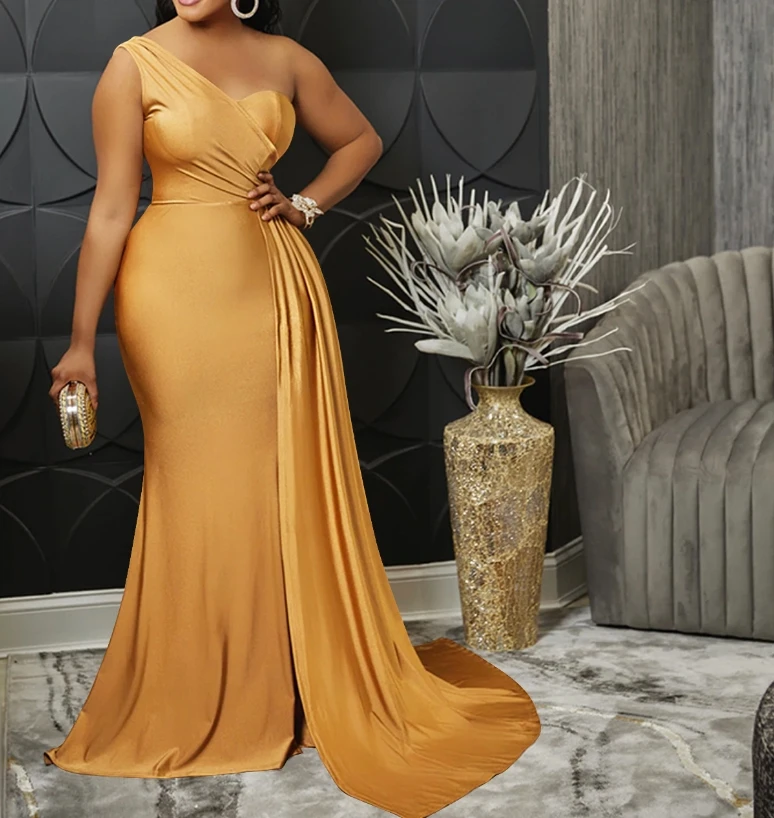 Solid Color Evening Party Tight Fitting Single Shoulder Sleeve Dress Long Skirt Women New Fashion 2025 Casual Female Clothing