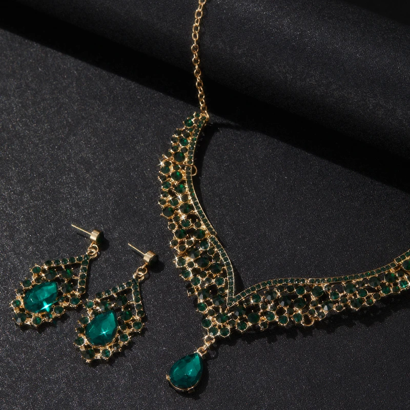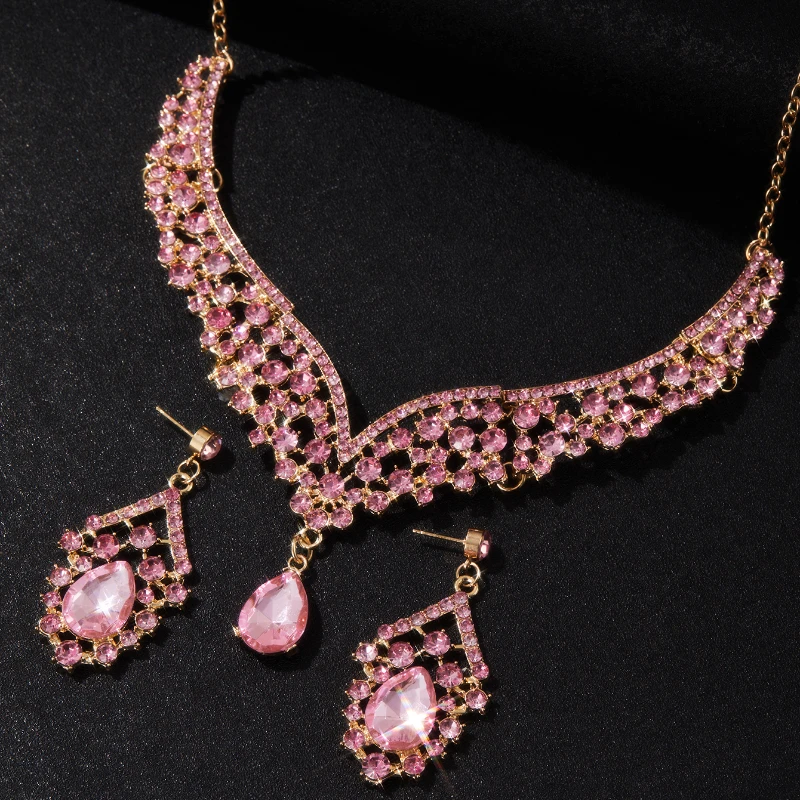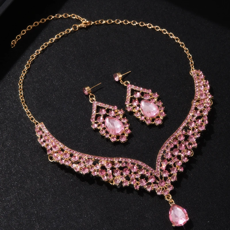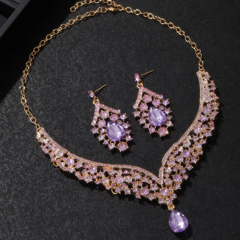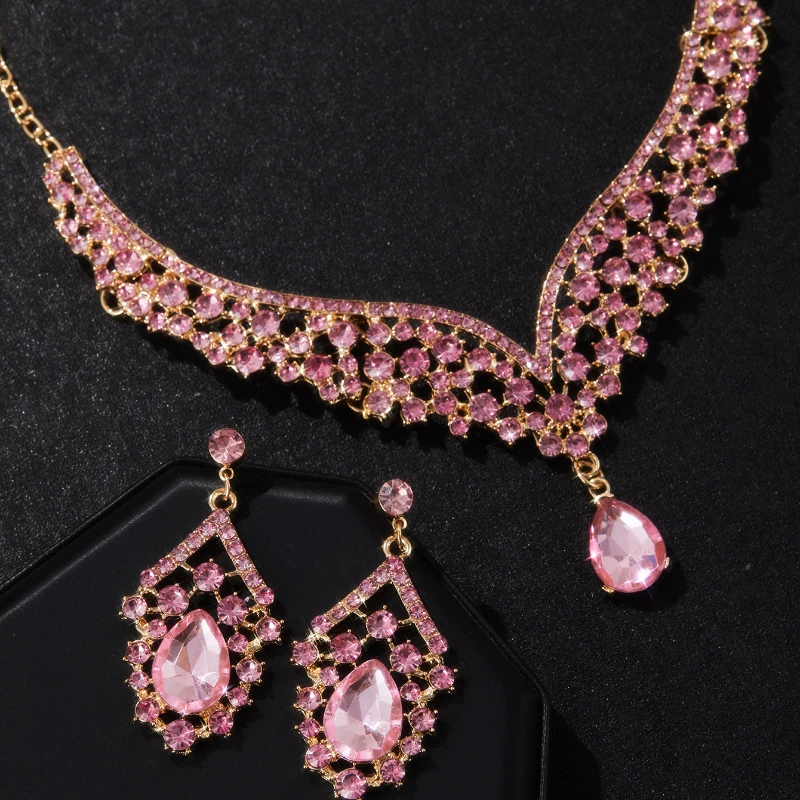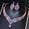 Sparkling Luxurious Women Earrings Necklace Set Water Drop Rhinestones Crystal Adjustable Jewelry Set for Wedding Bride