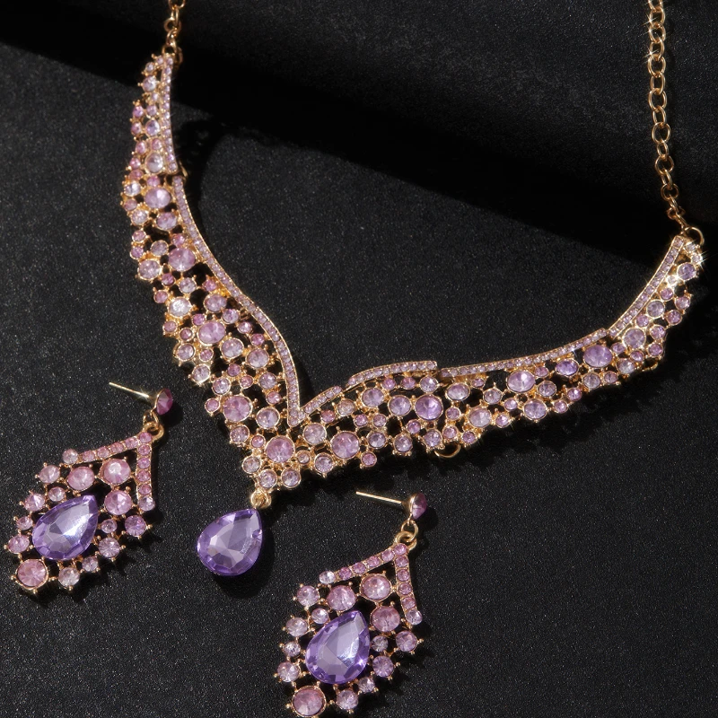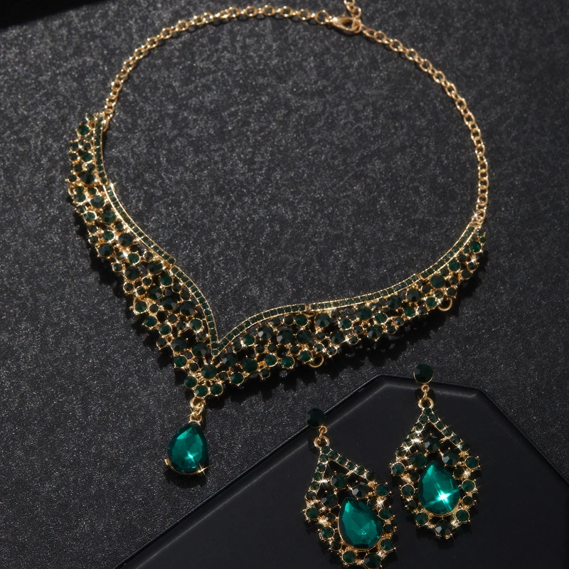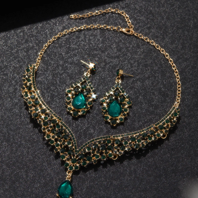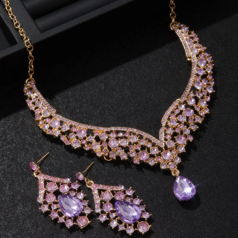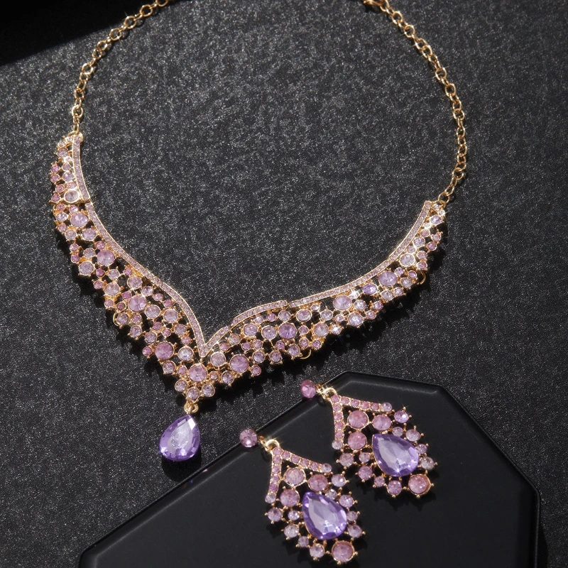 Sparkling Luxurious Women Earrings Necklace Set Water Drop Rhinestones Crystal Adjustable Jewelry Set for Wedding Bride