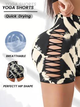New In Shorts For Women Casual Summer High Waist Tight Yoga Shorts Large Hollow Sexy Fitness Shorts Plus Size Shorts For Girls