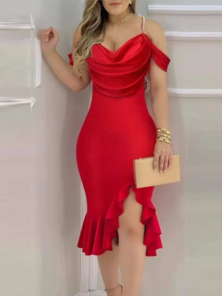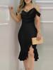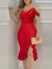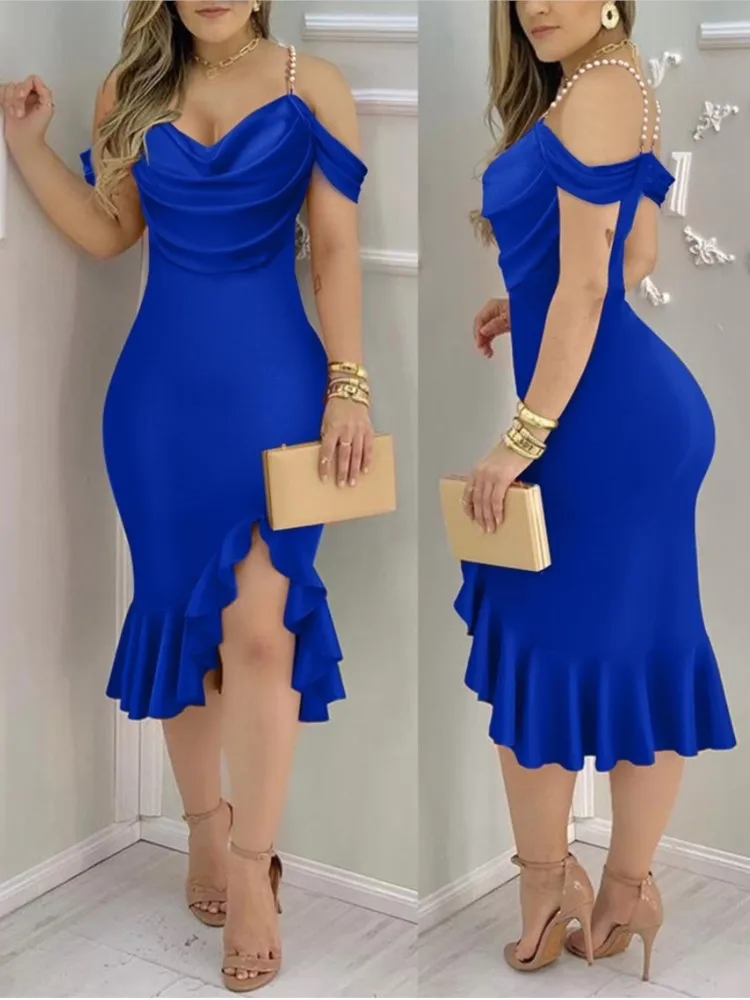 Spring Summer Fashion Solid Party Off Shoulder Dress Sexy Swinging Collar Out Sleeve Split Hip Skirt Elegant Slim Women Dresses