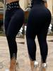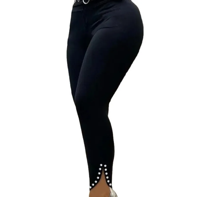 Spring Summer New Women’s Slit Trousers Cannon Beads High Waist Metal Sheet Skinny Pants