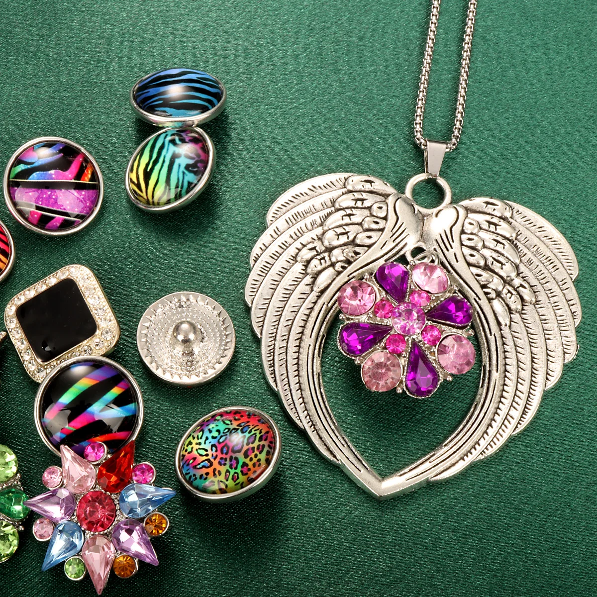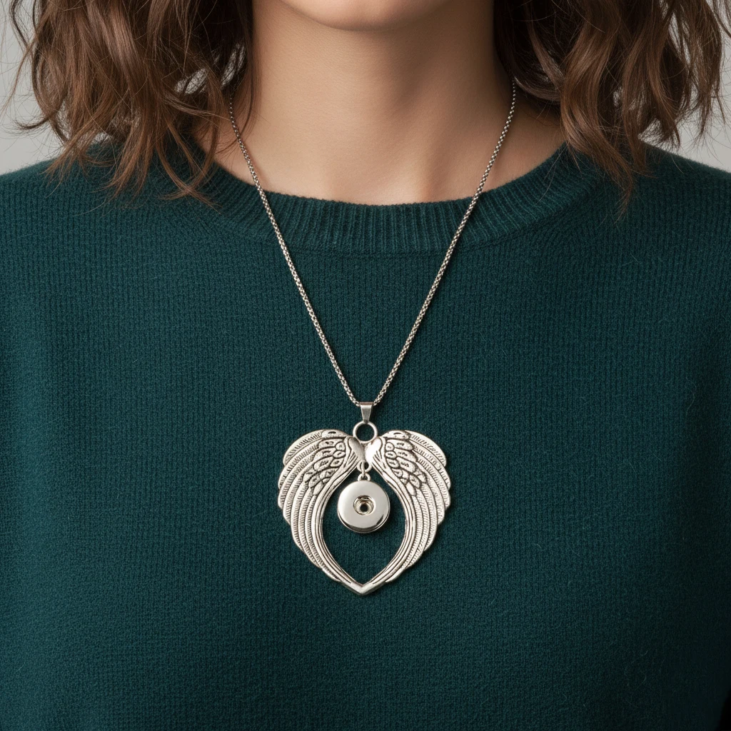 Stainless Steel Chain Charm Women Men 003 Wing Necklace Choker Fit 18mm Ginger Snap Button Necklace for Wedding Prom Jewelry
