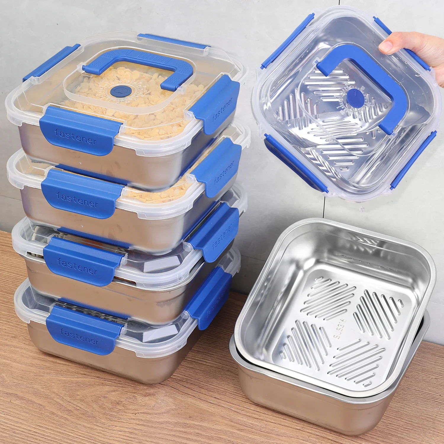 Capacity: 1800ml/2500ml Dimensions: 1800ml 19.5*19.5*8.3cm, 2500ml 21*21*8.2cm Material: 316 stainless steel Quantity: 1pcs The package includes: 1* Stainless steel food storage container sealed lunch box