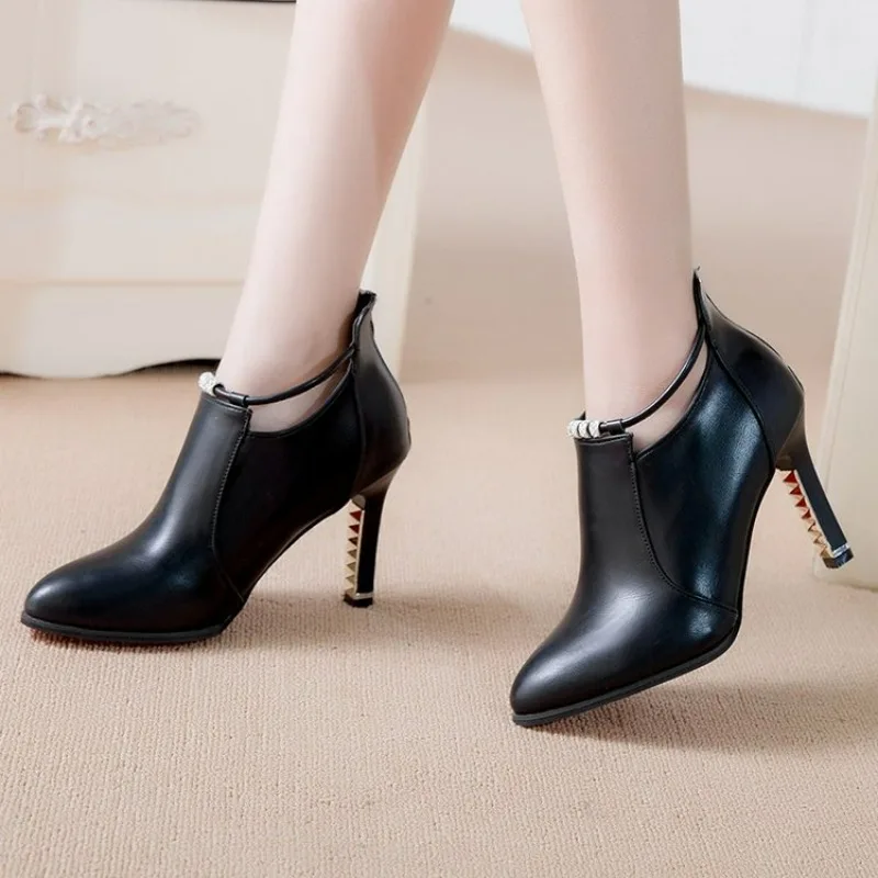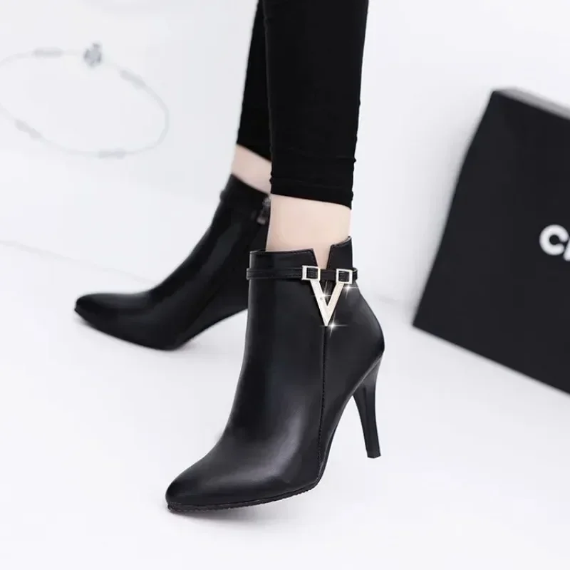 Stiletto Thin Heel Pointed Toe Faux Leather Zipper Sexy Boots Ankle Women Boot Red High Heels 9cm Spring Autumn 40 Boot