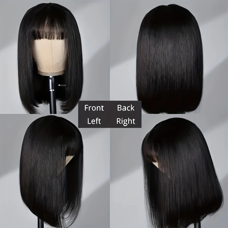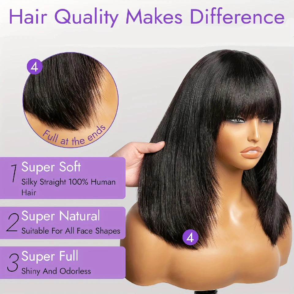 Straight Short Bob Wig With Bangs 100% Human Hair Full Machine Made Bob Wigs Glueless Straight Wigs On Sale Clearance For Women