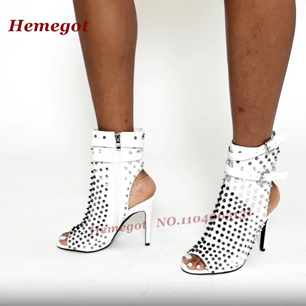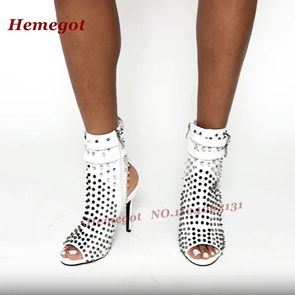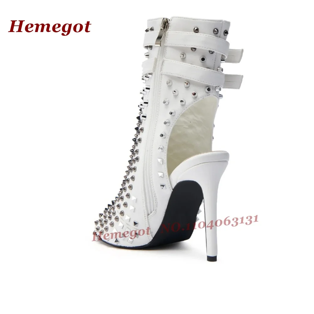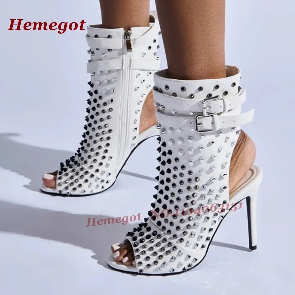 Studded Splicing Stiletto Sandals Open Toe Belt Buckled Thin High Heels Women’s Sandals 2025 New Summer Slingback Side Zipper