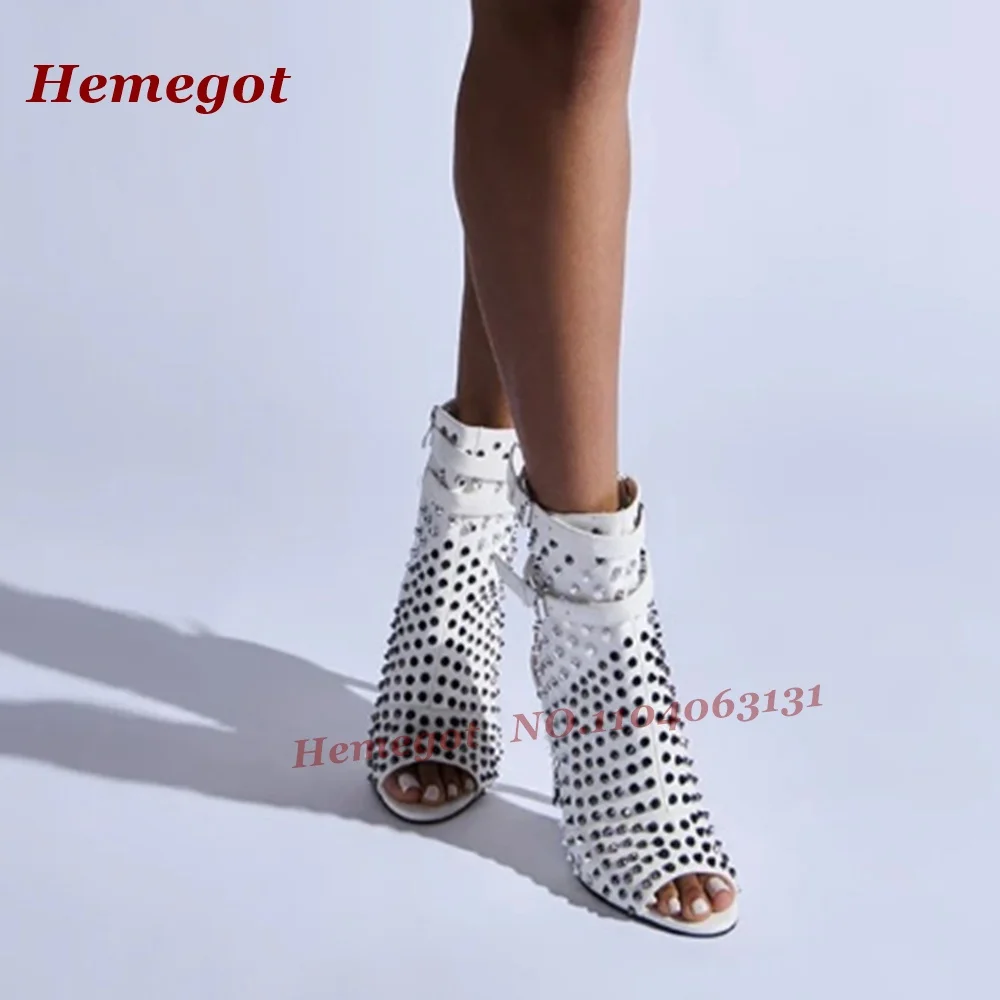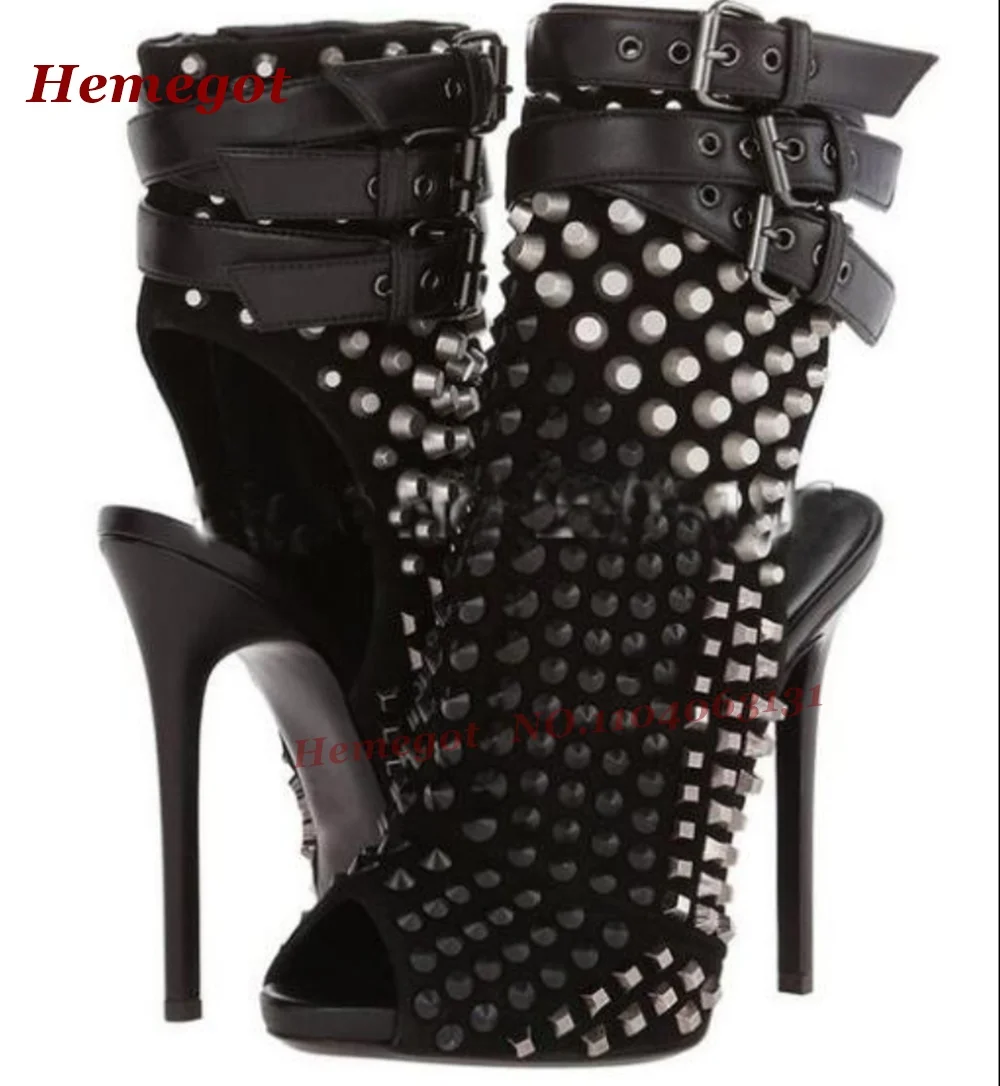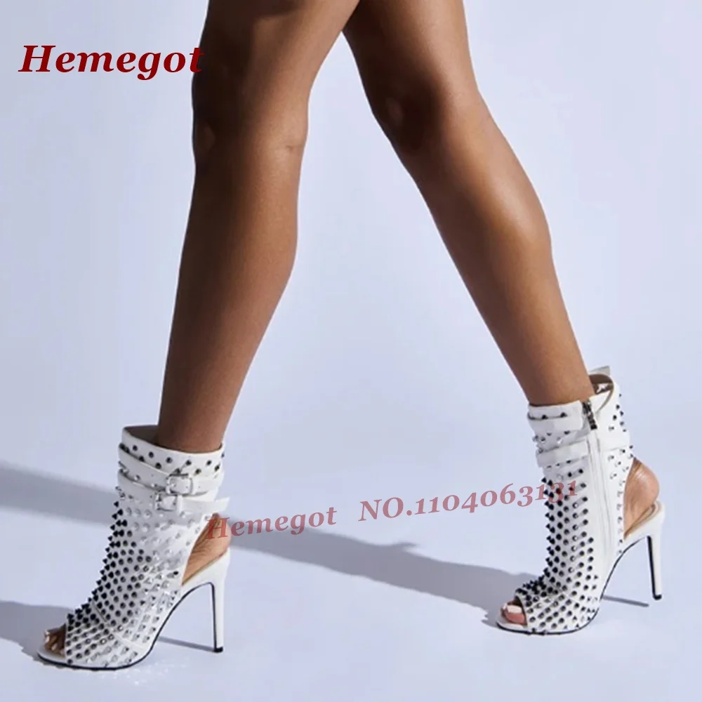 Studded Splicing Stiletto Sandals Open Toe Belt Buckled Thin High Heels Women’s Sandals 2025 New Summer Slingback Side Zipper