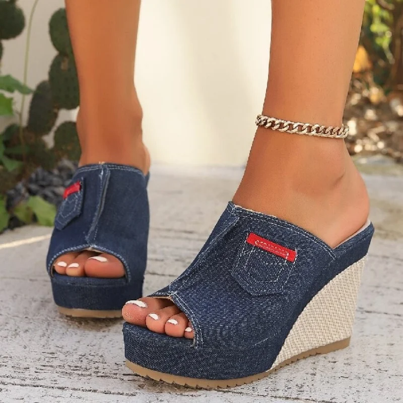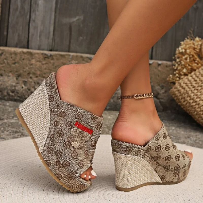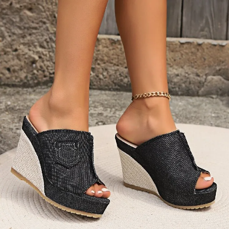 Summer 2025 new women’s slope heel flip-flops with thick soles, simple and fashionable fish-mouth flip-flops for outerwear