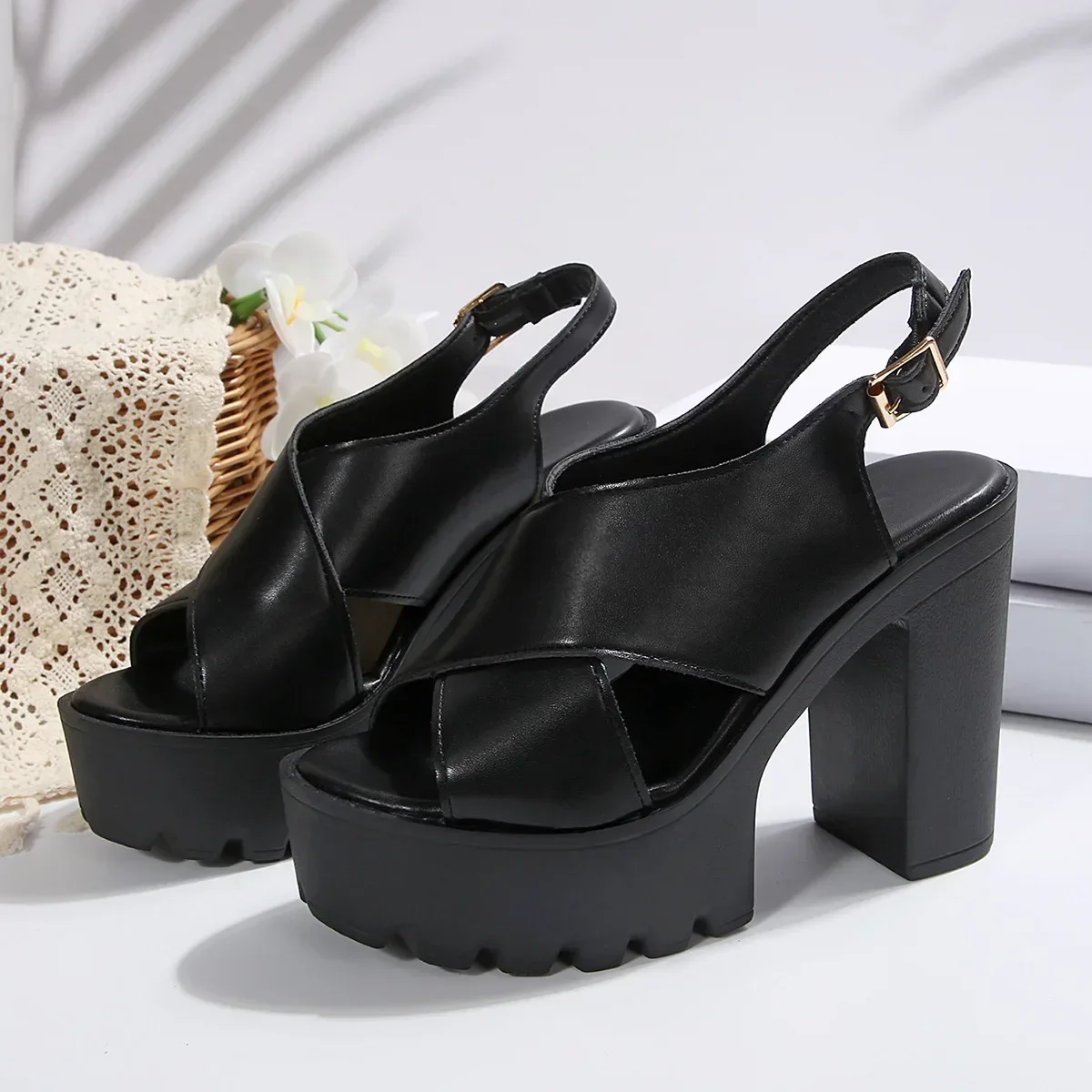 Summer Open-Toe Waterproof Platform Thick Heel Ultra High Heel Sandals Stage Performance Fashion Show Large Size Shoes