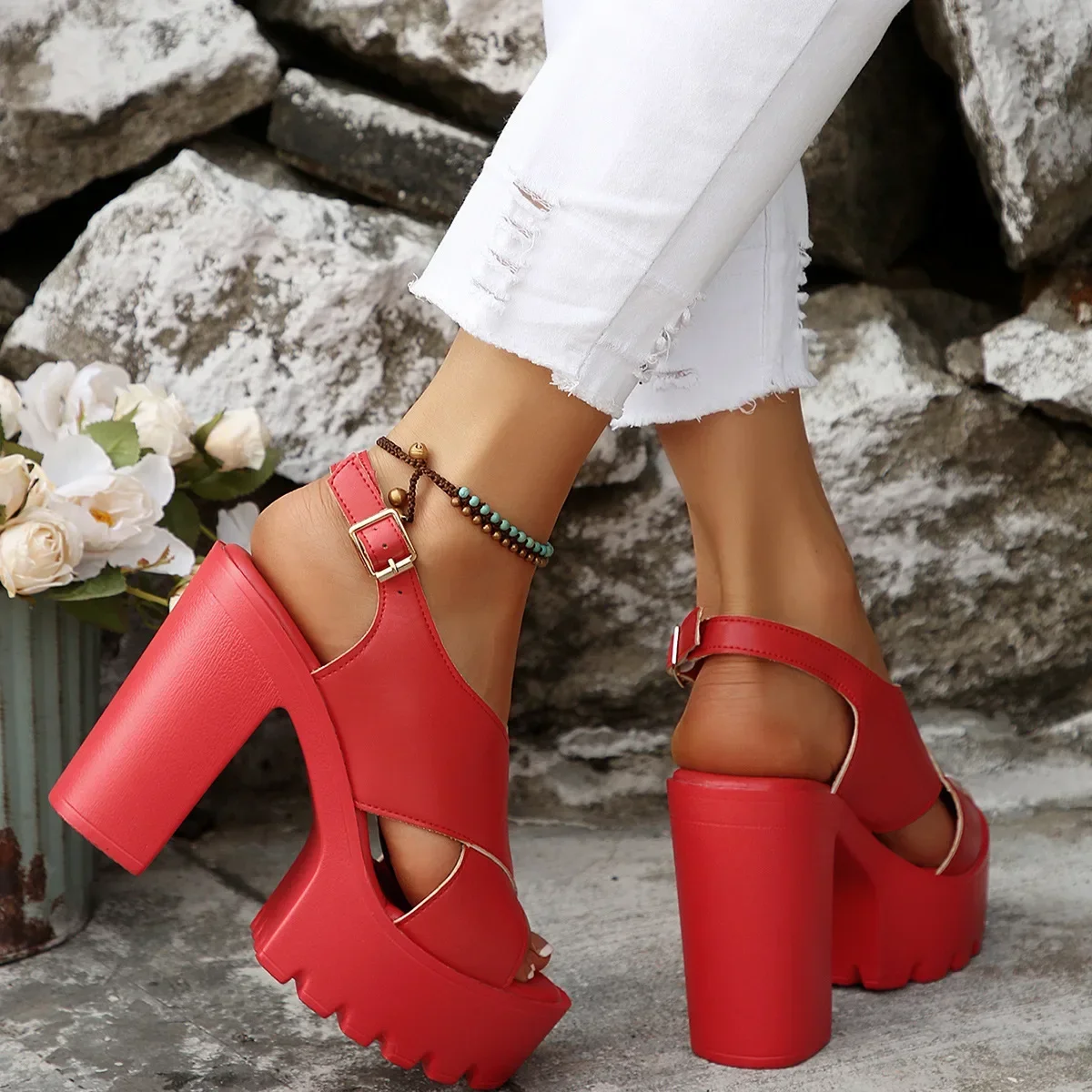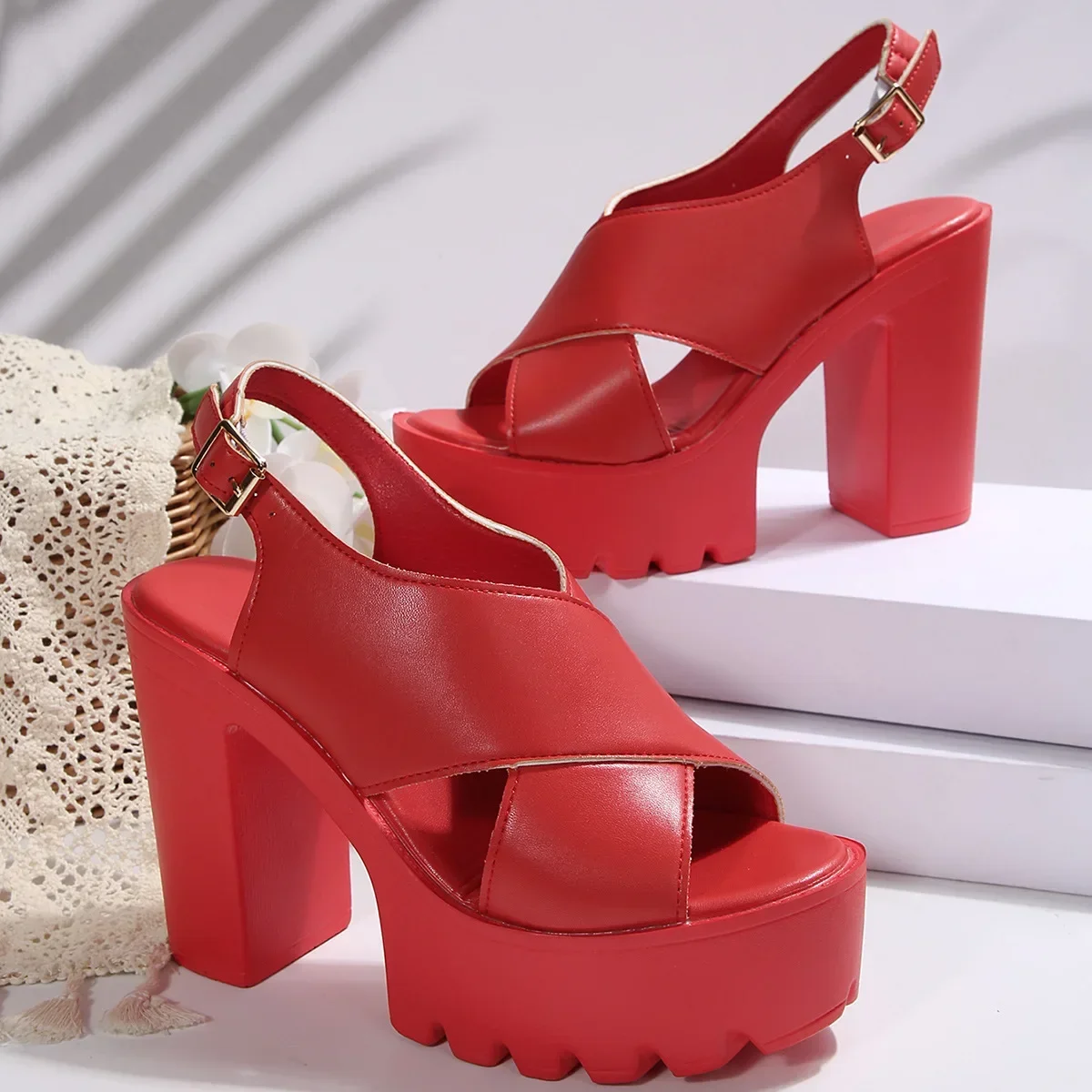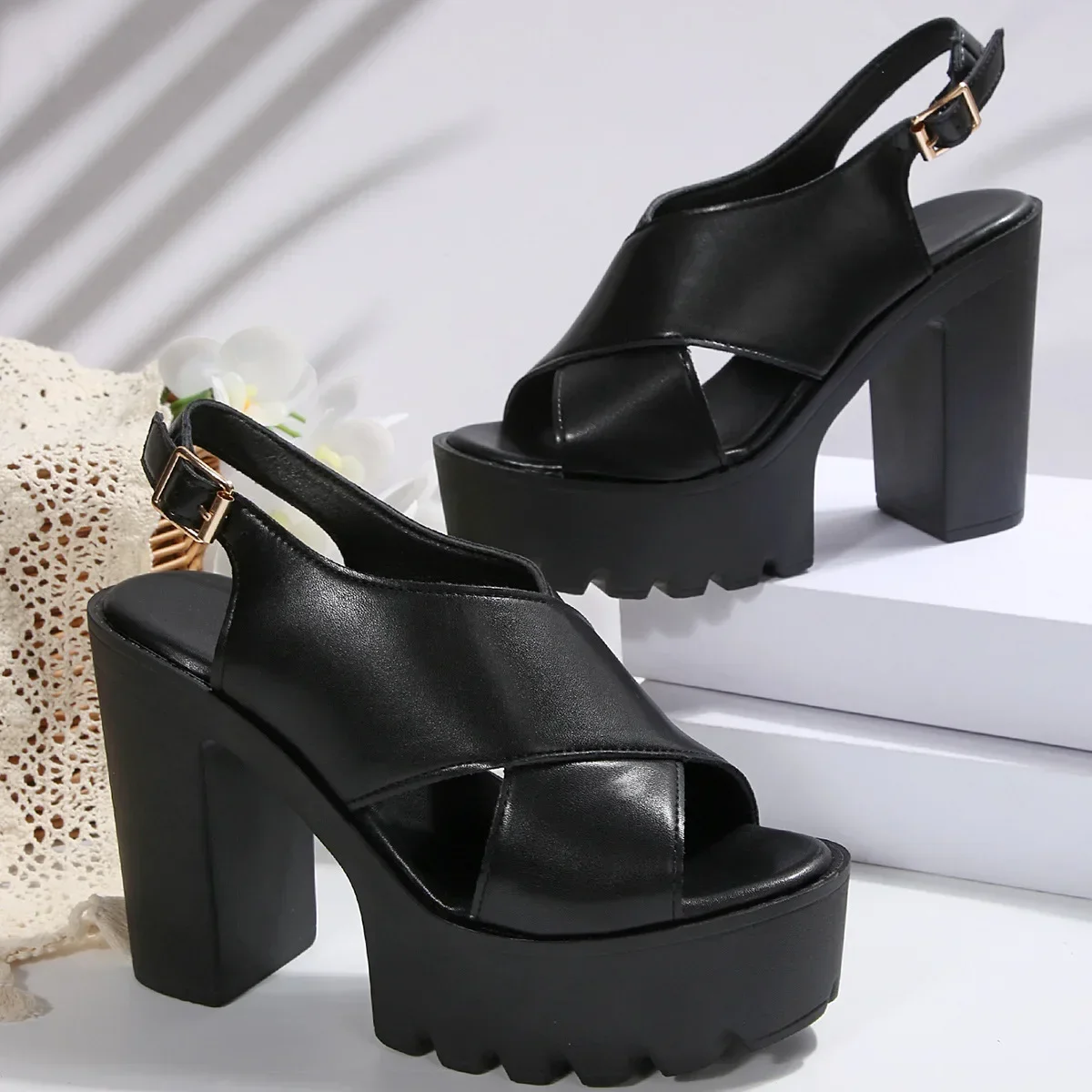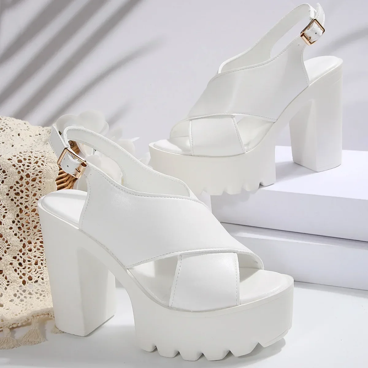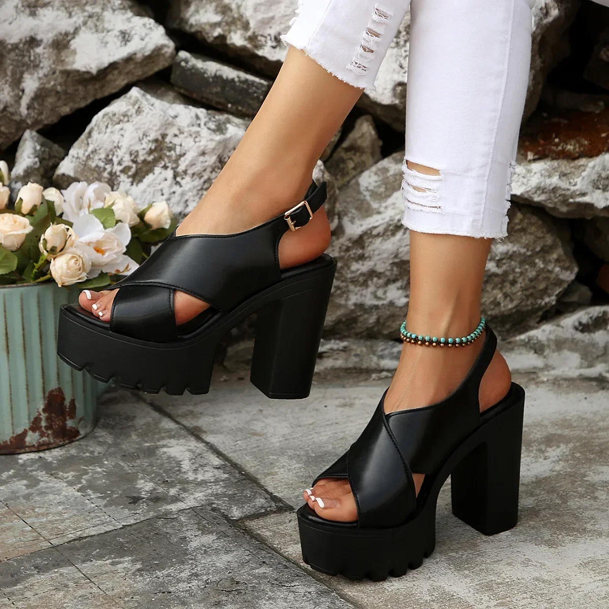 Summer Open-Toe Waterproof Platform Thick Heel Ultra High Heel Sandals Stage Performance Fashion Show Large Size Shoes