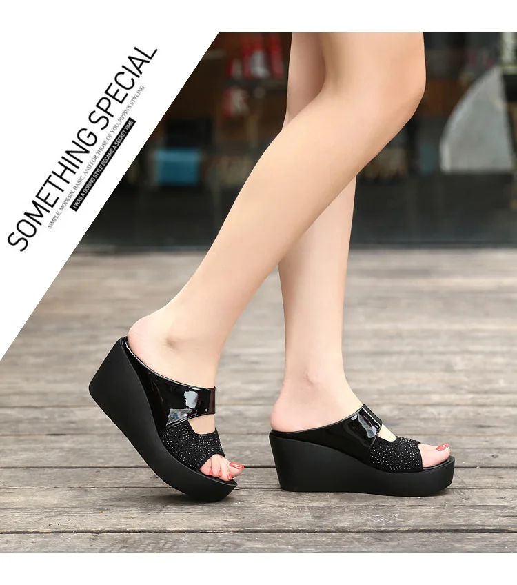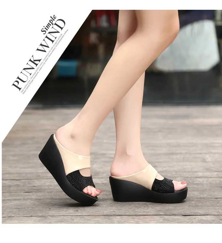 Summer Slope Heel Women’s Slippers Thick Bottom Waterproof Platform Exposed Toe High Heels Cool Slippers zapatos de mujer