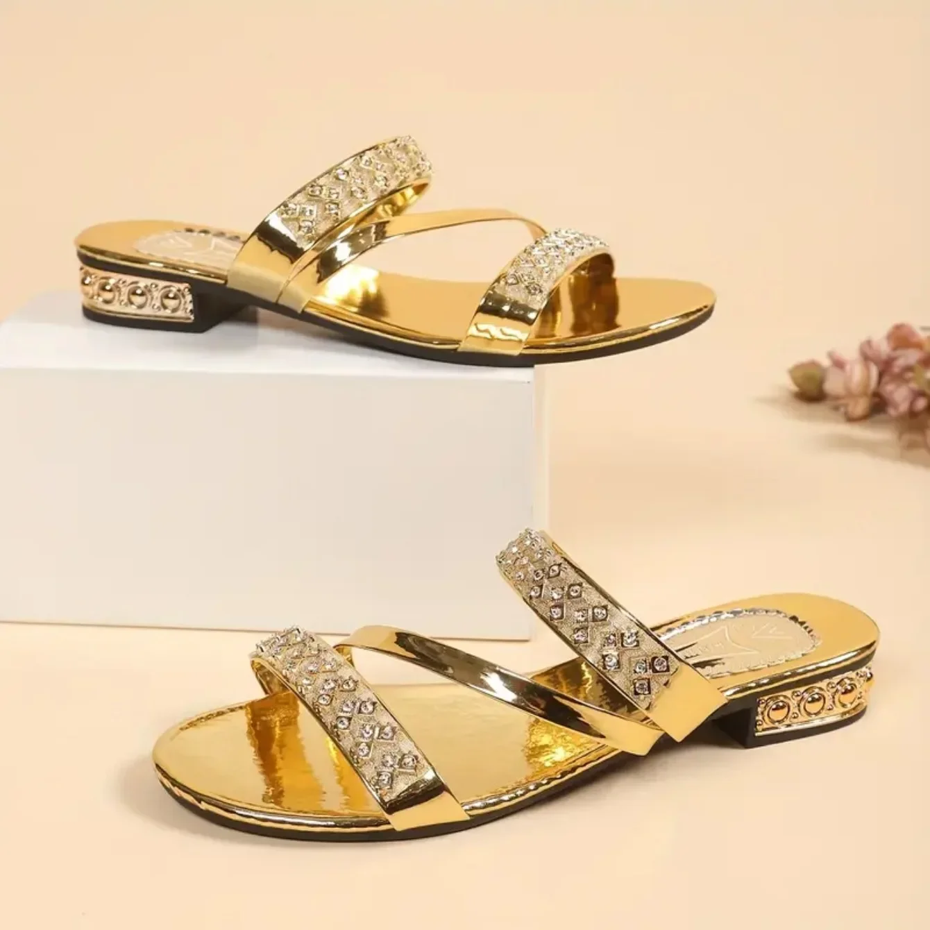 Summer Women Slippers Square Head Snake Pattern Shoes New Flat Bottom Slippers Women Transparent Belt Sandals Slides Women