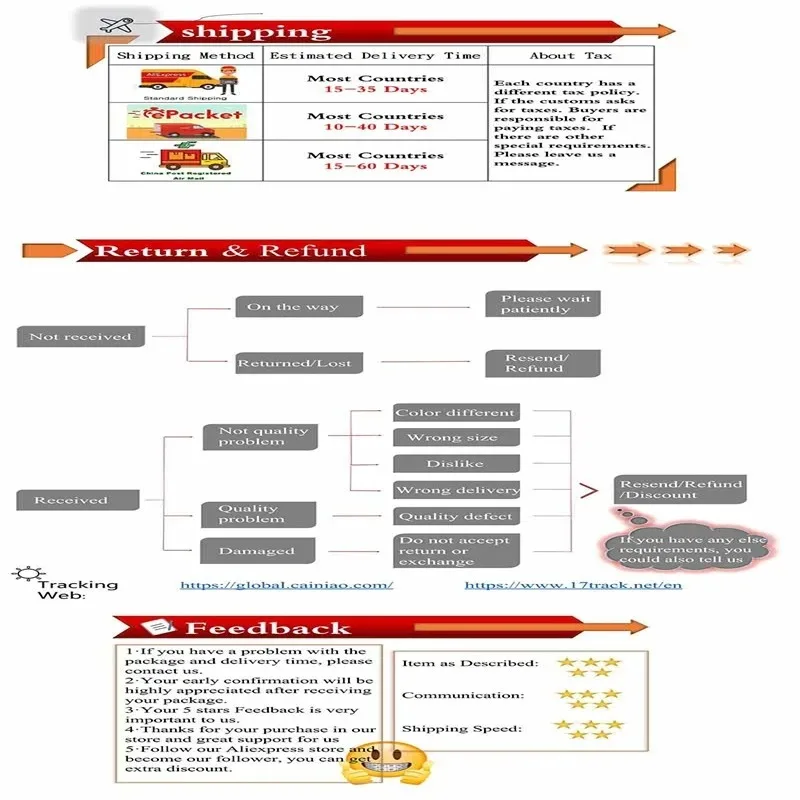 • If you did not receive the product within the guaranteed time( 45 days not including 2-5 day processing) you can request a refund or a reshipment.