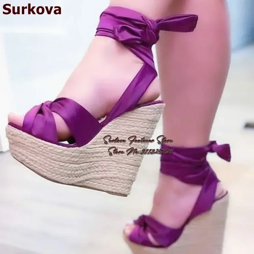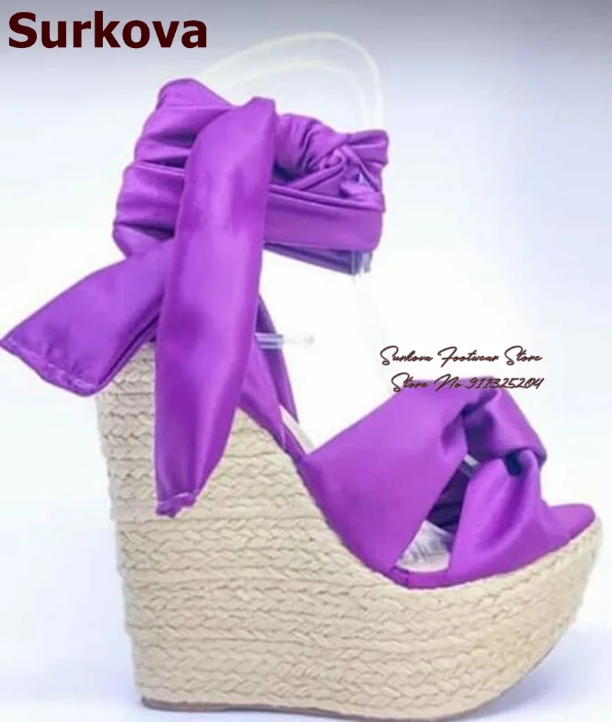 Surkova Metallic Pink Matte Chunky Heel Sandals Elegant Butterfly-knot Open Toe Dress Shoes Buckle Strap Platform Wedding Pumps