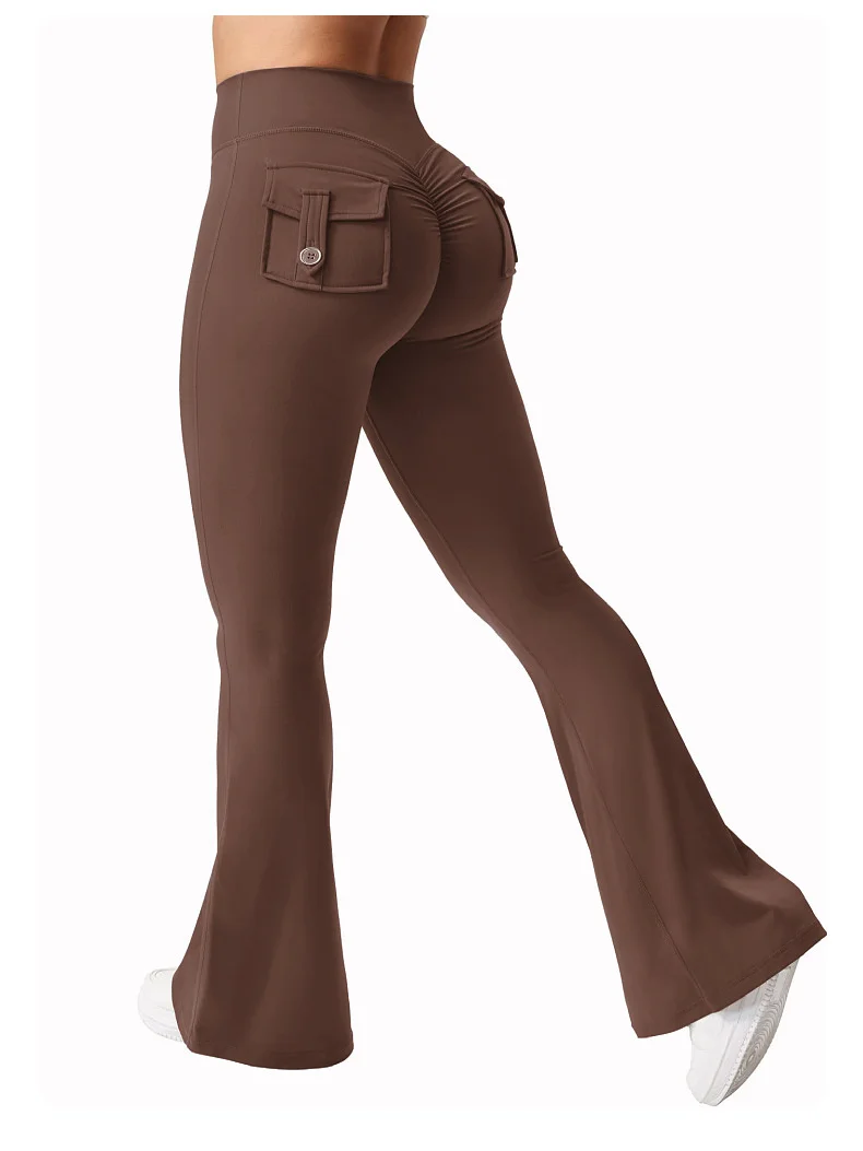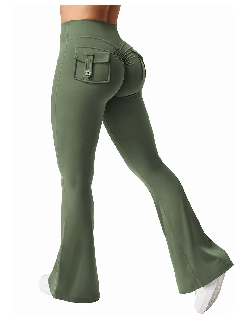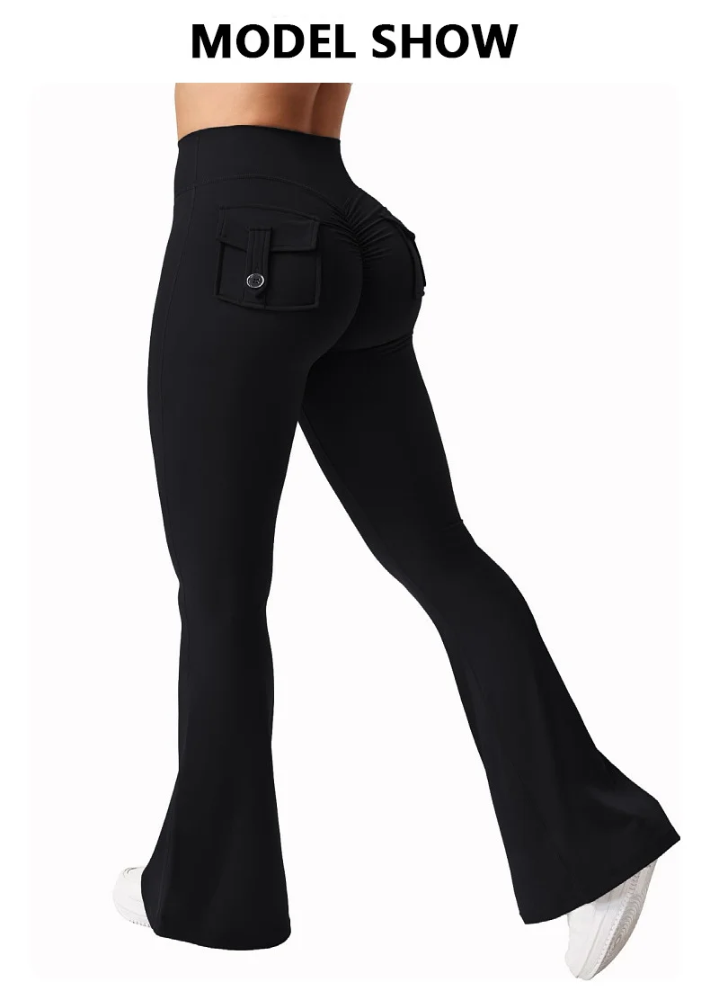 ABOUT:YOGA PANTS SPORT FITNESS FLARE SCRUNCH LEGGINGS POCKET TROUSERS GYM WOMAN CLOTHES