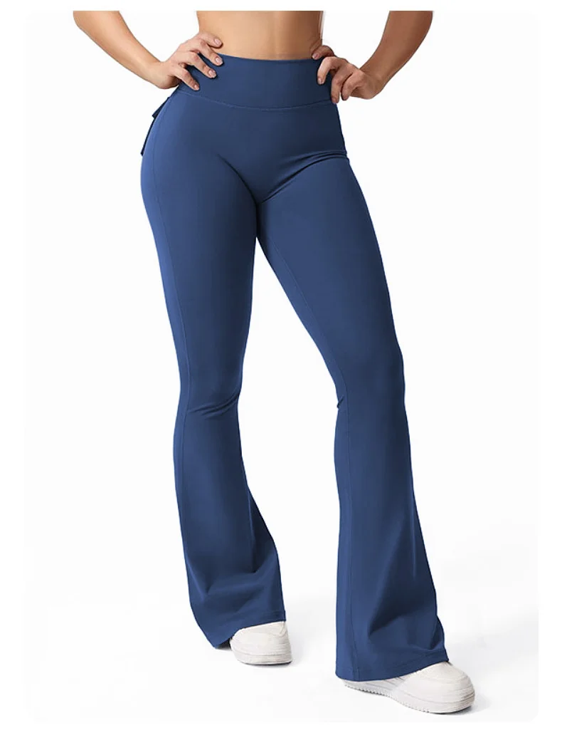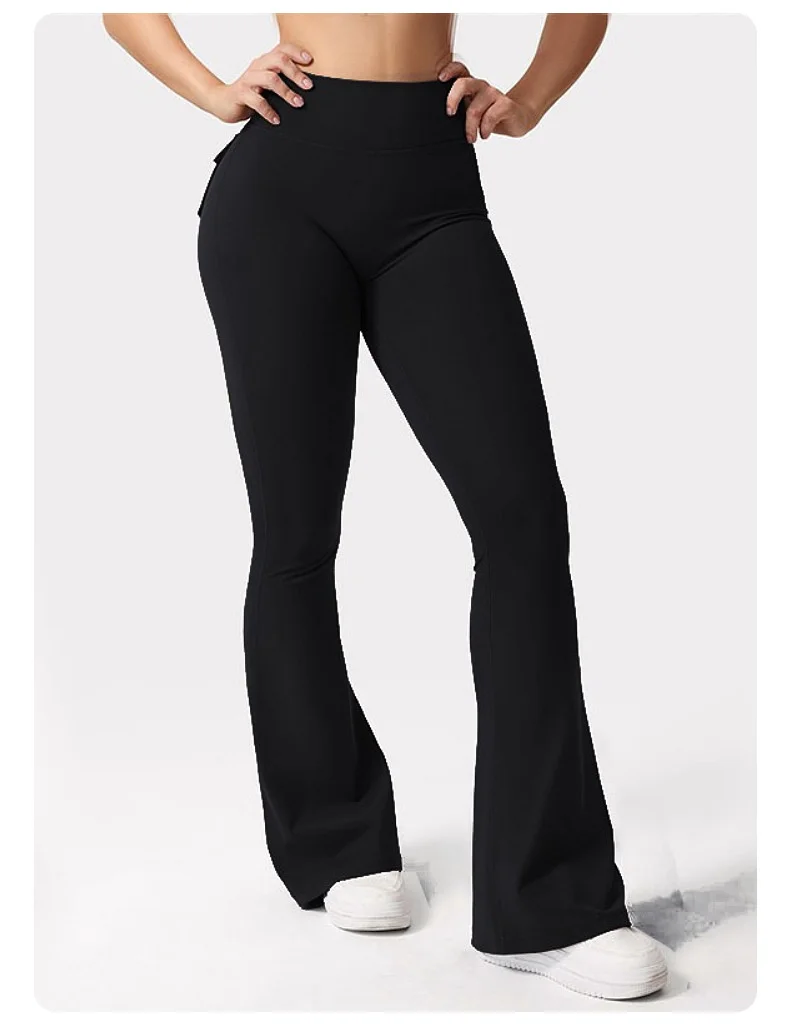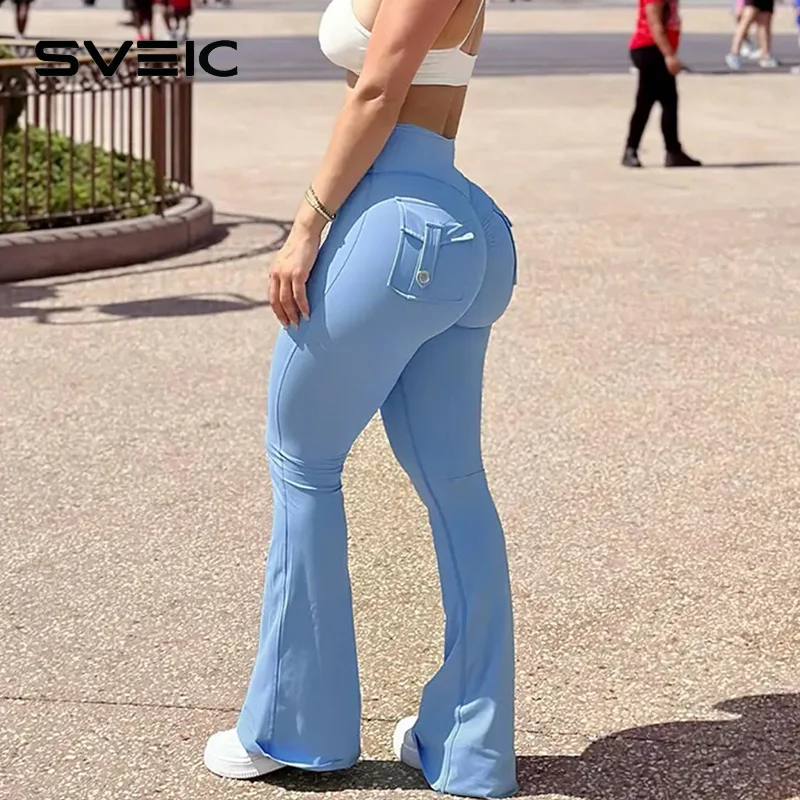 SVEIC Flare Leggings Yoga Pants Sport Fitness High Waist Scrunch Leggings With Pocket Workout Trousers Running Gym Woman Clothes
