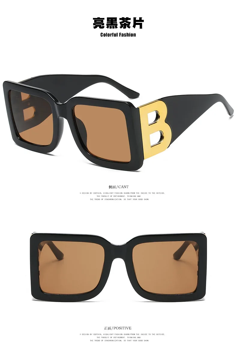 The Letter “B” Large Framed Sunglasses Women’s Square Personalized Sunglasses Trendy Retro Glasses & Accessories