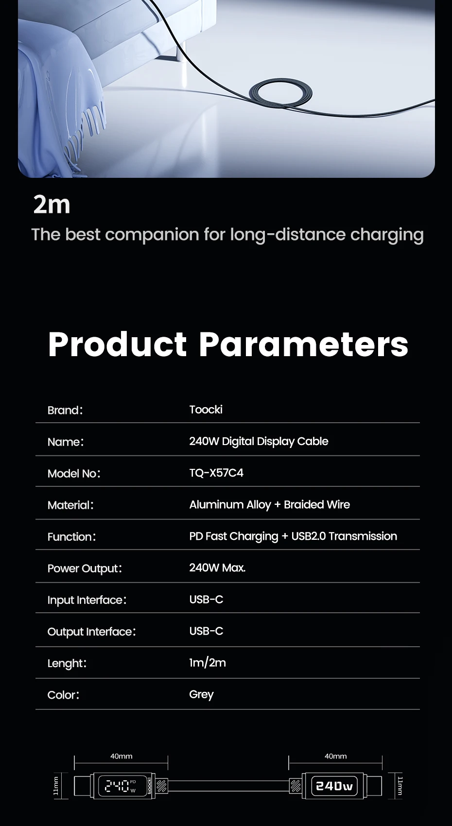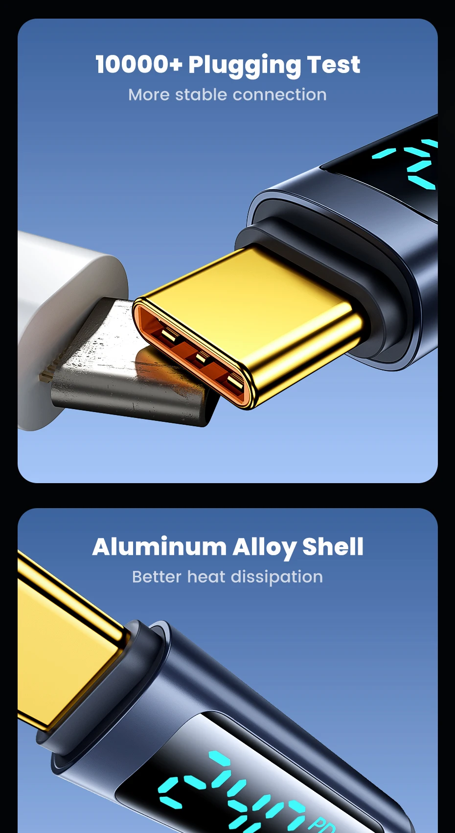 ✅Digital Display Type C Cable:Dynamic power digital display design indicates the charging power, making the fast charging speed is visible.