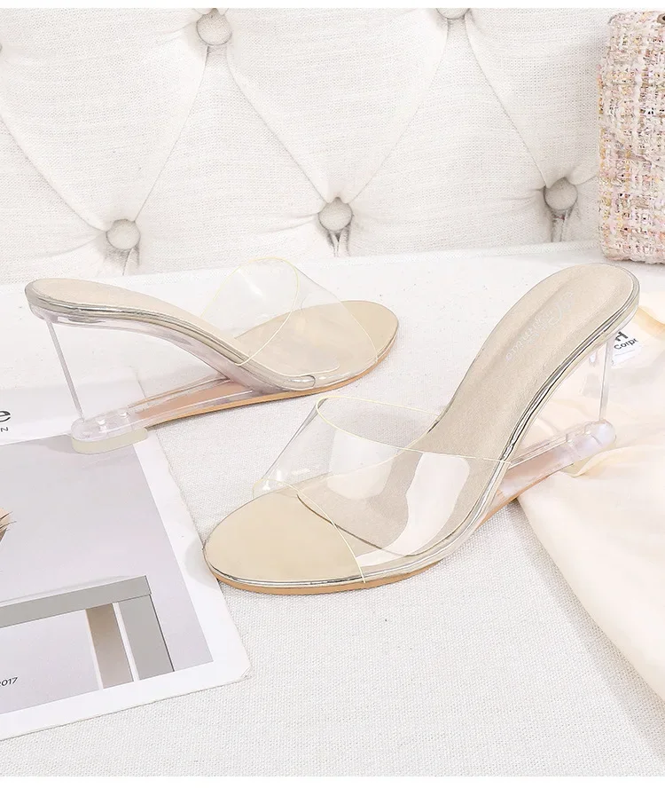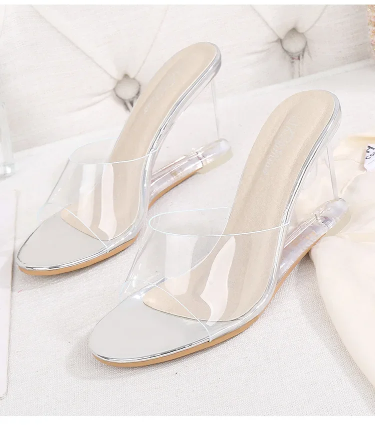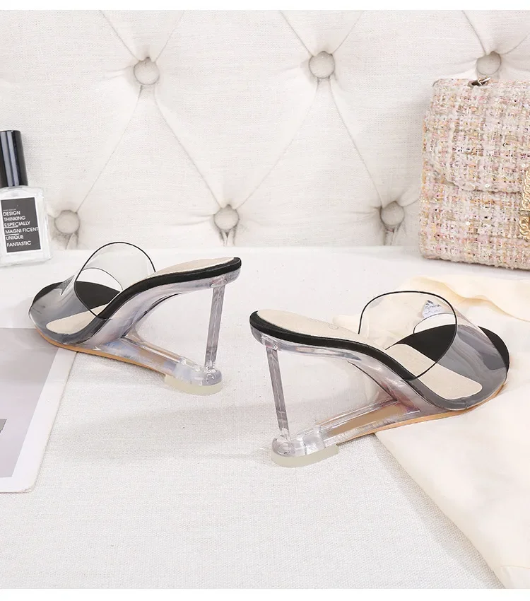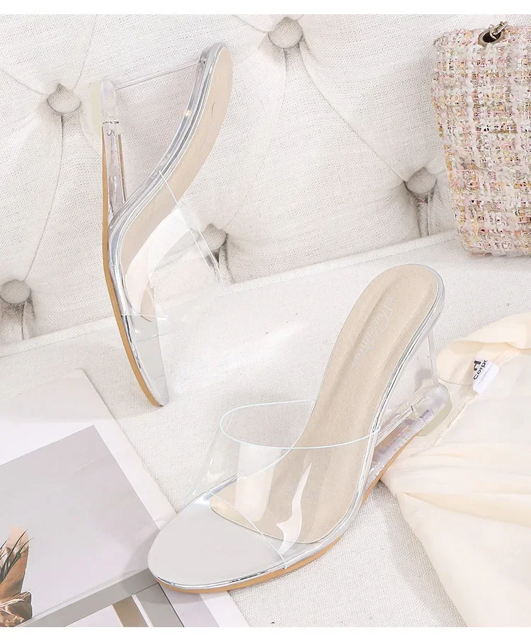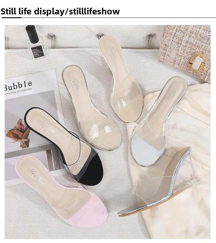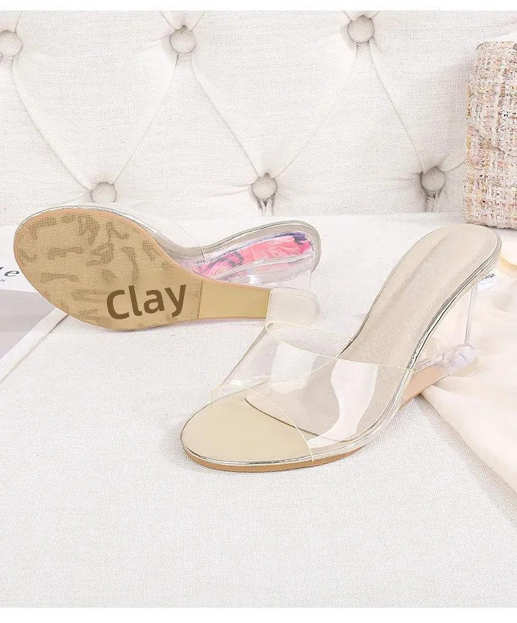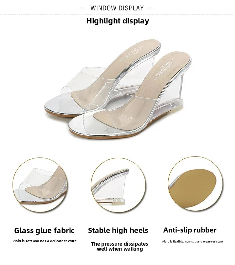 • Transparent Wedge Sole : The transparent wedge sole adds a modern touch while providing comfortable support and stability.