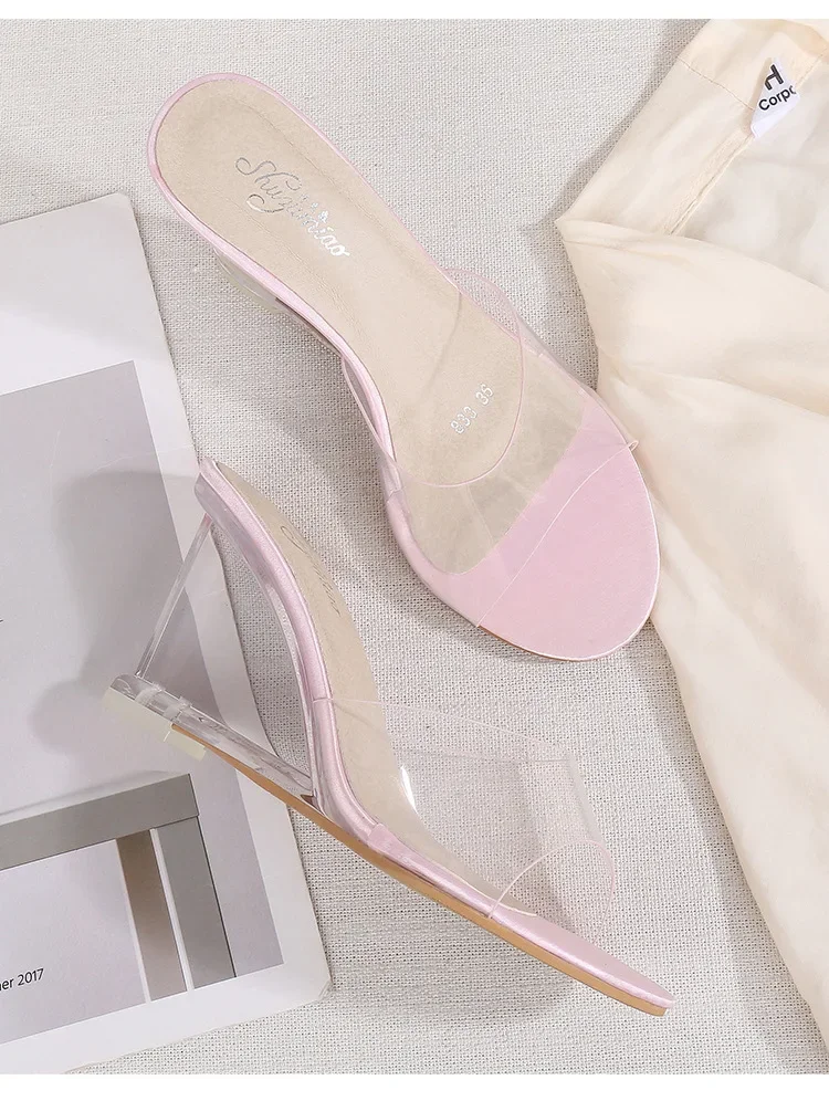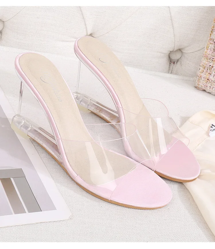 Transparent High Heels Women’s Summer New Korean Style Versatile Simple Slope Sandals Buckle Fashionable Rubber Uppers