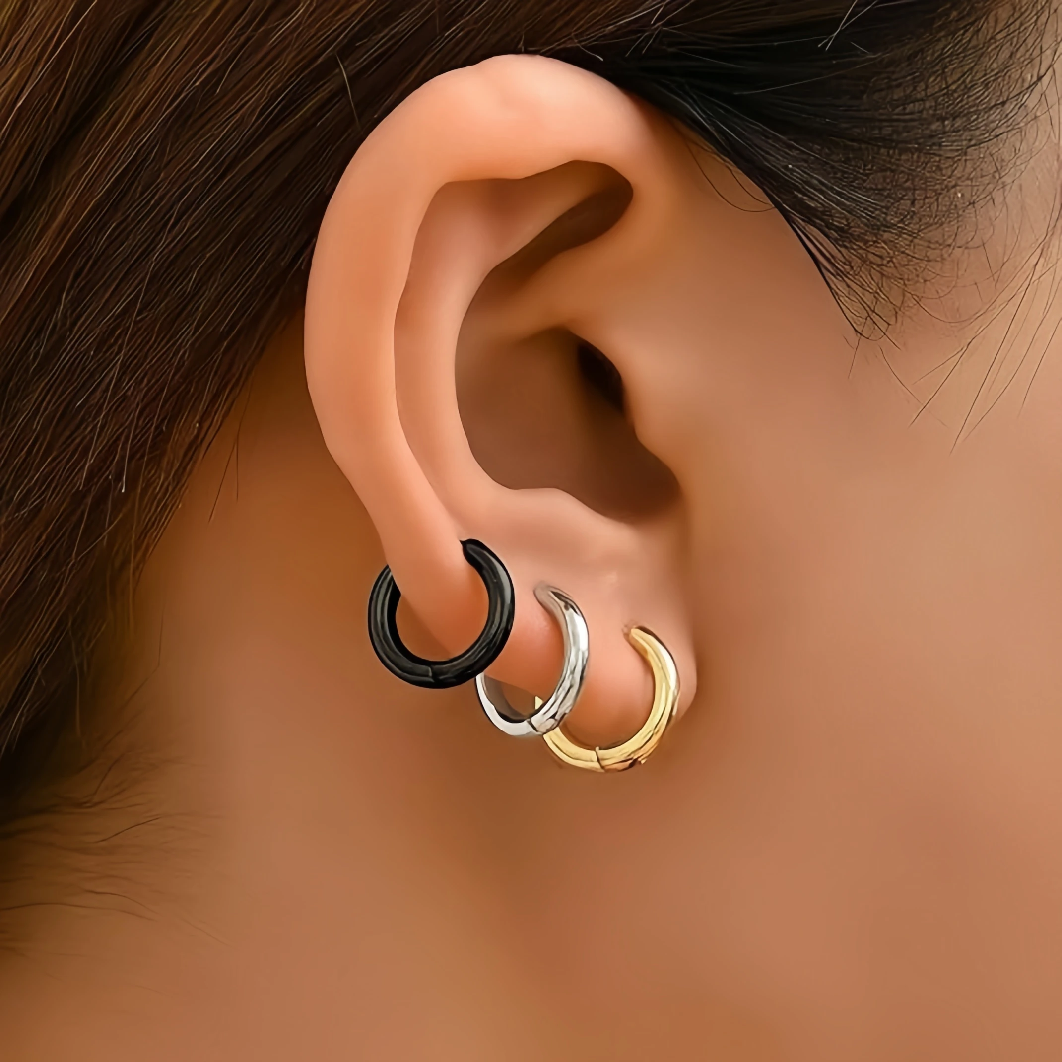 Trend Black/Gold Color Classic Stainless Steel Men Women’s Hoops Earrings Minimalist Y2k Small Round Circle Piercing Ear Jewelry