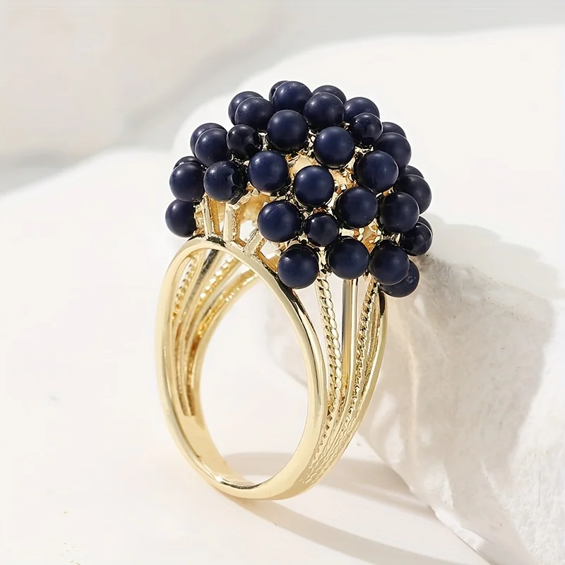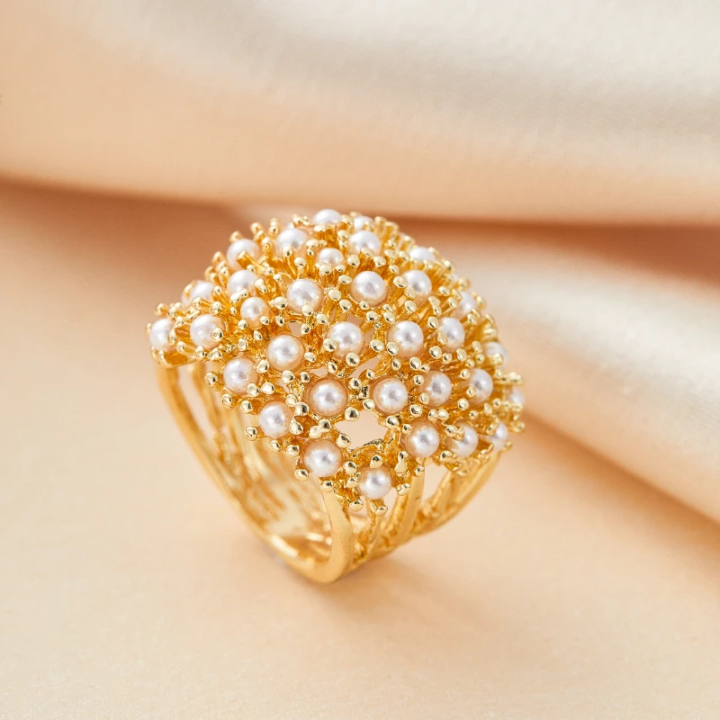 Trendy Hollow Golden Color Inlay Pearls Rings for Women Birthday Gift Accessories Fashion Custom Jewelry