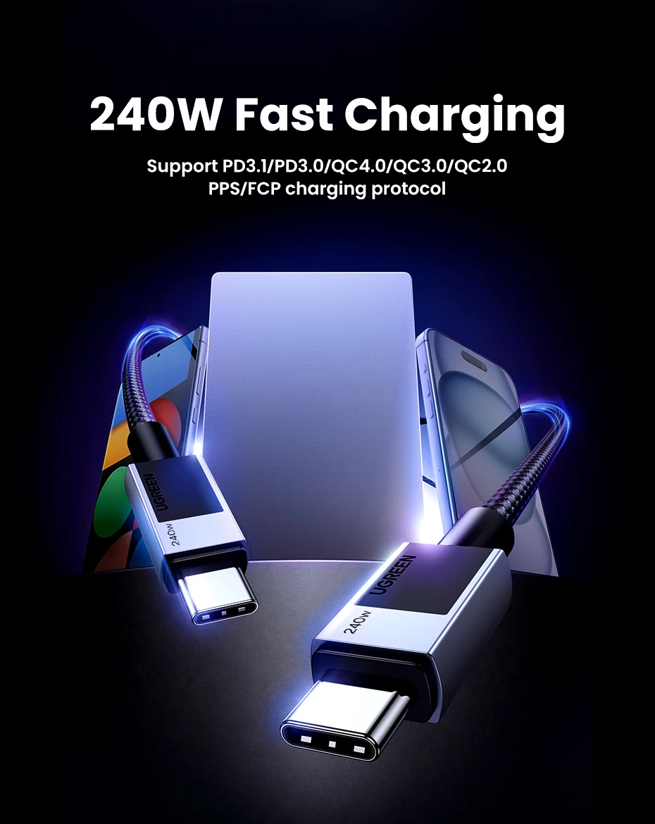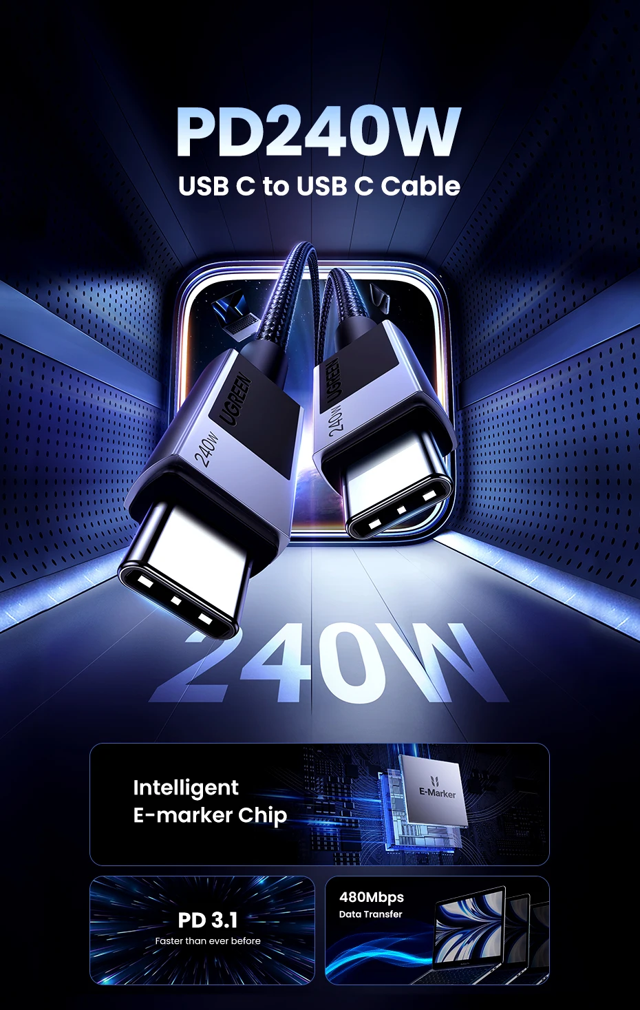 UGREEN PD 240W USB C to USB C Cable PD3.1 Fast Charge for MacBook Pro Air Laptop iPhone 17 16 15 Pro Samsung 5A PD Charge Cable