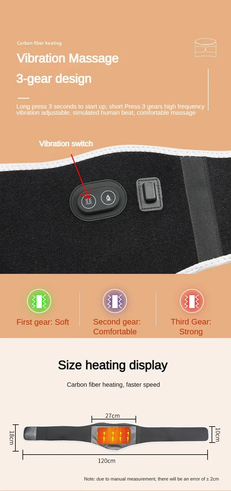 2. Built-in three red-light heating plates, double-sided red-light heating at waist and abdomen, and three-gearadjustable temperatureto protect your health.