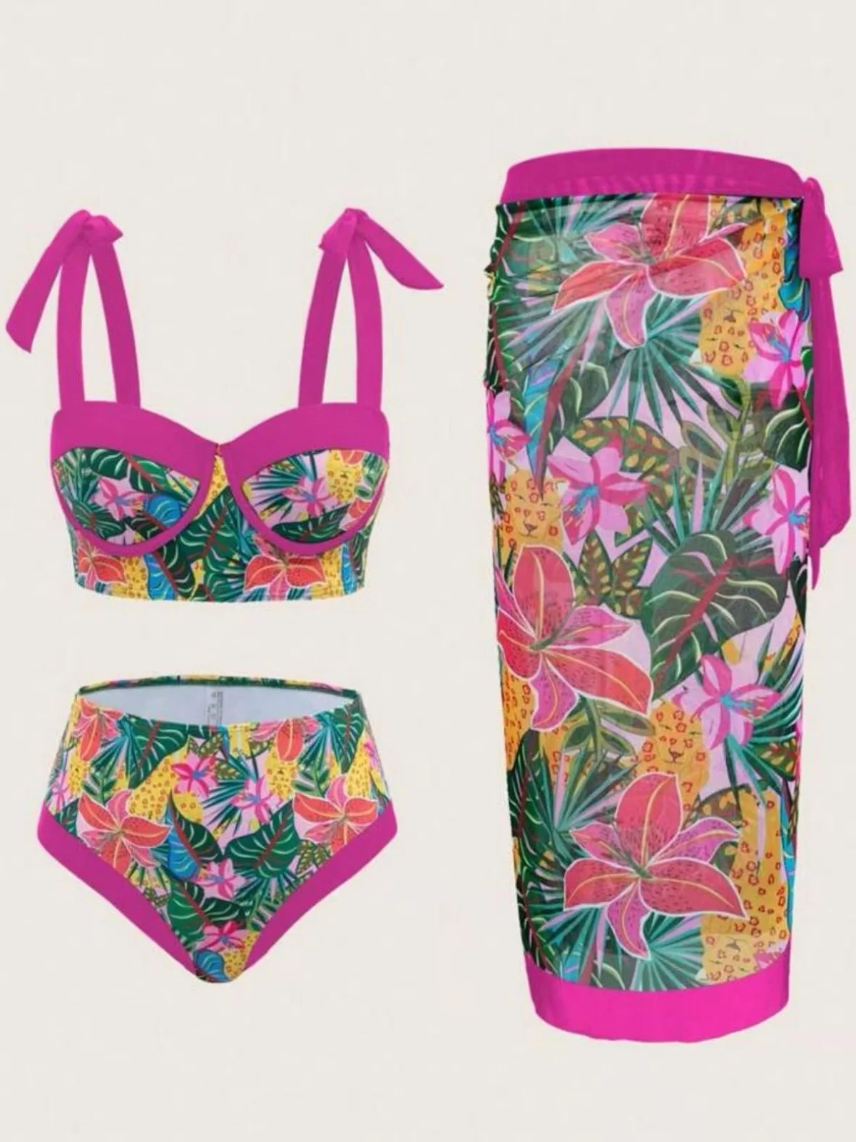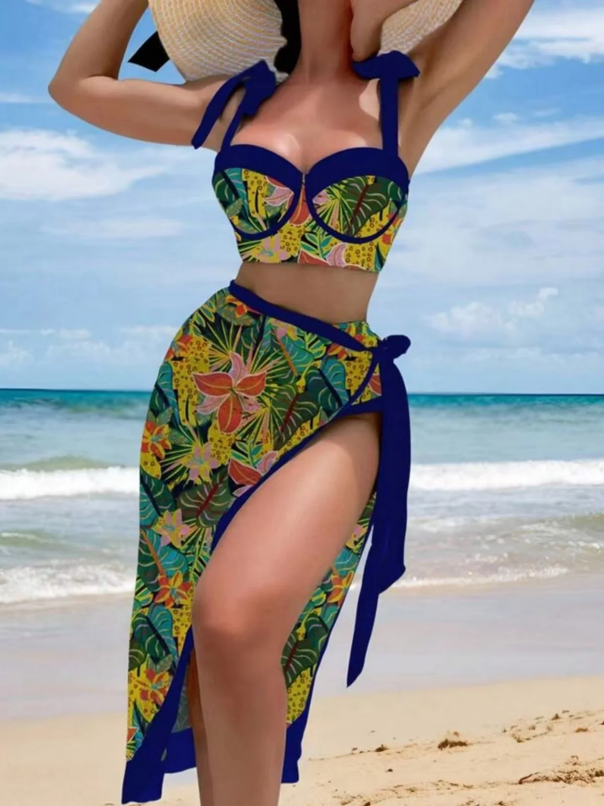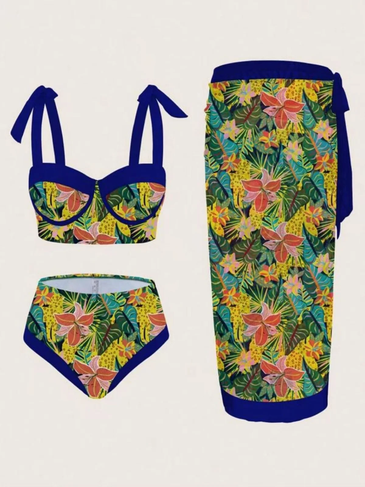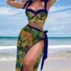 vintage black floral print bikini set 2026 women tie strap push up underwire bra high waist swimsuit beach holiday bathing suit skirt 3 piece swimwear