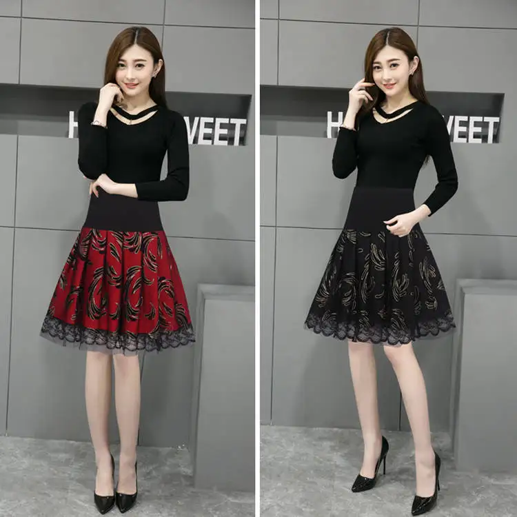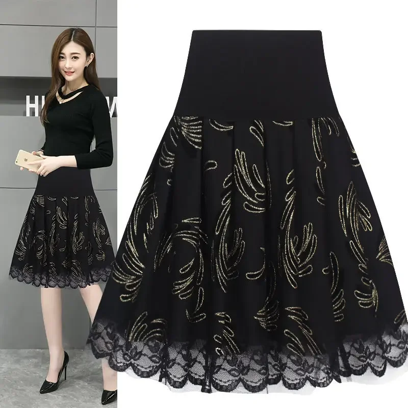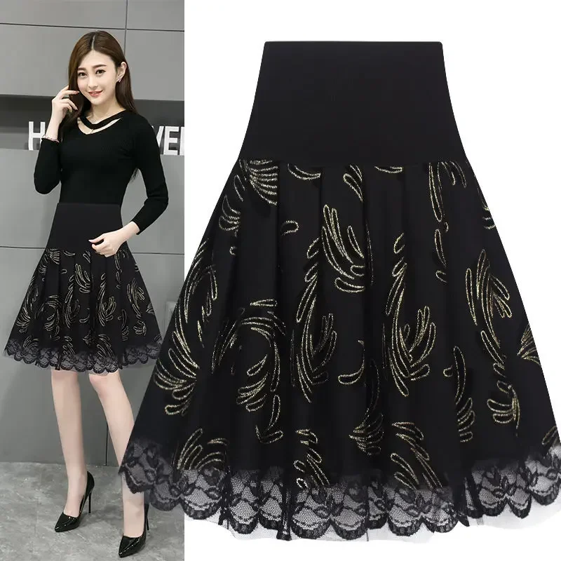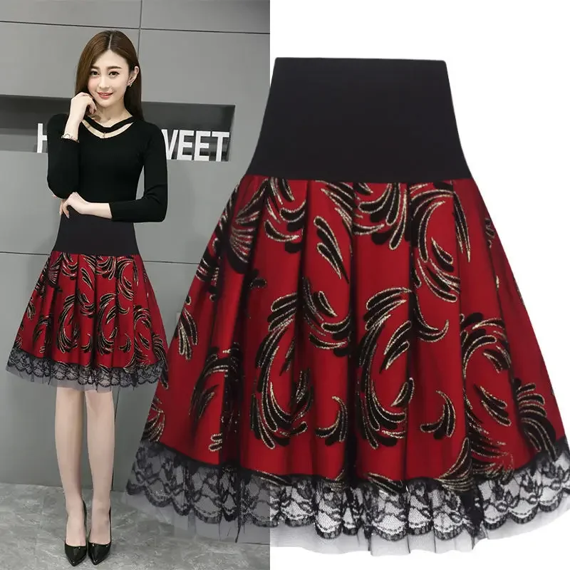 Voile Pleated A- line Short Skirt Elastic Waist Large Size Woman Skirts Mujer Faldas Saias Mulher